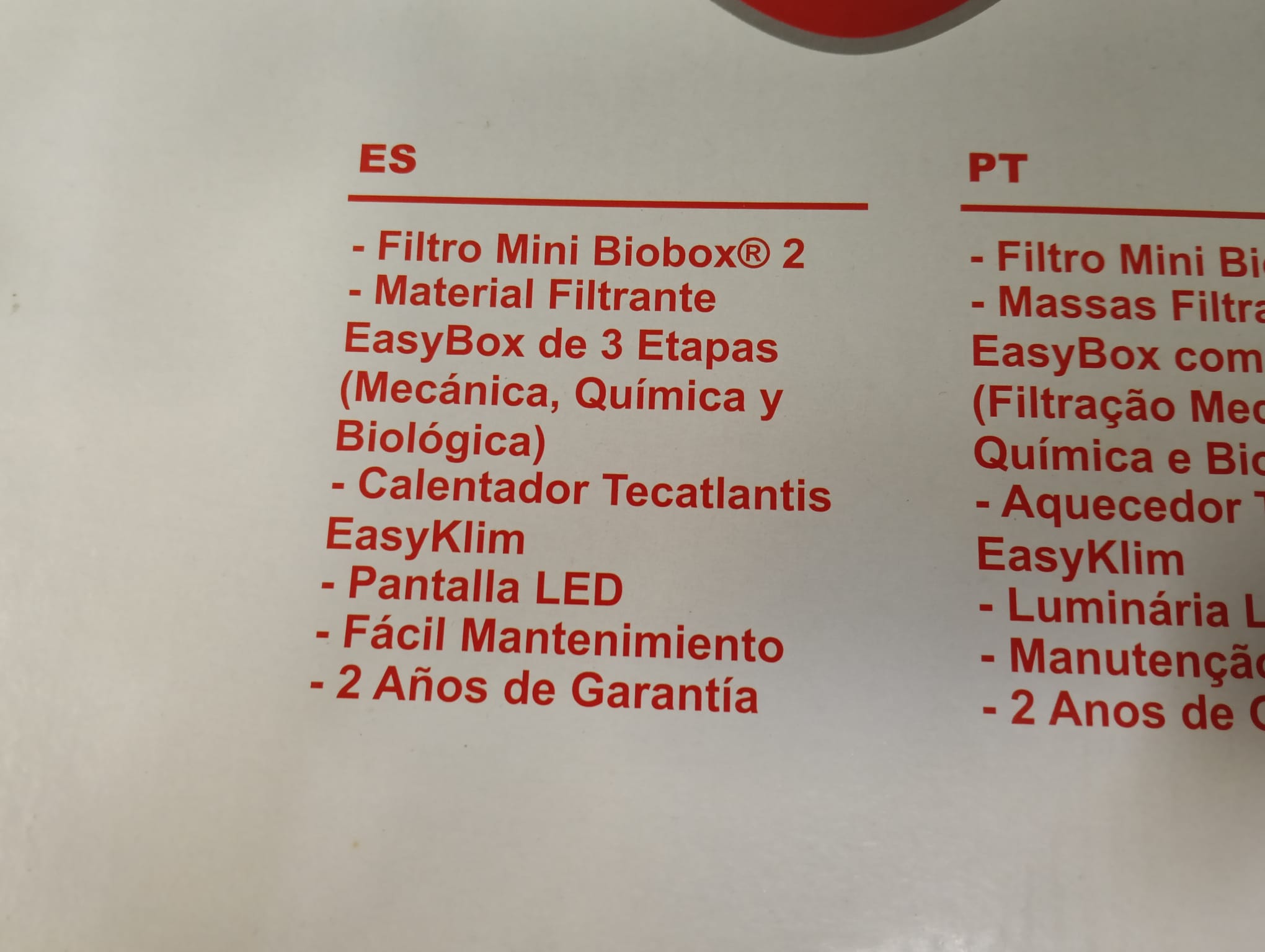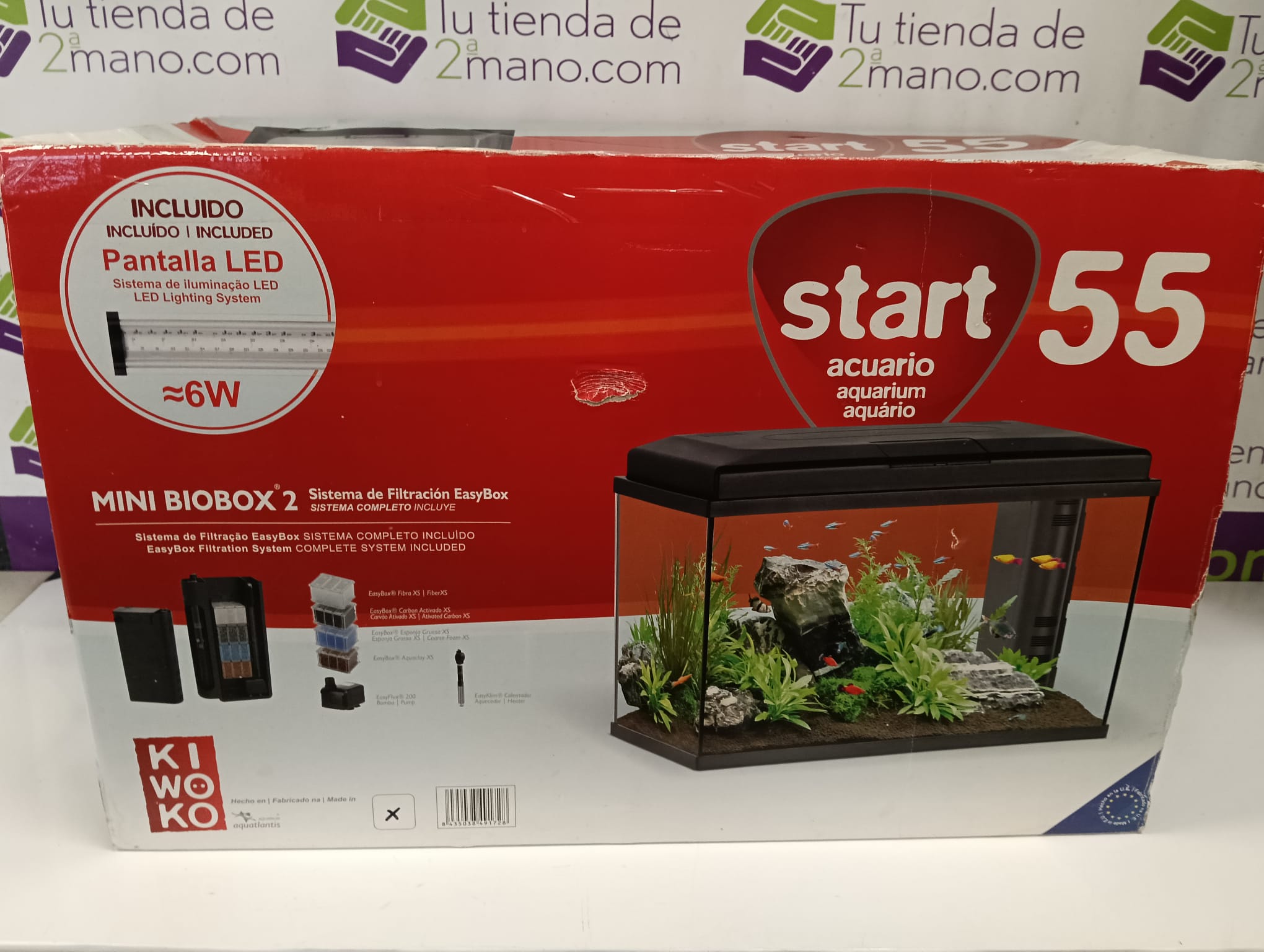 Acuario de la marca Kiwoko, modelo Start 55. Incluye pantalla LED y sistema de filtración. Pantalla LED de iluminación. Sistema de filtración EasyBox completo.