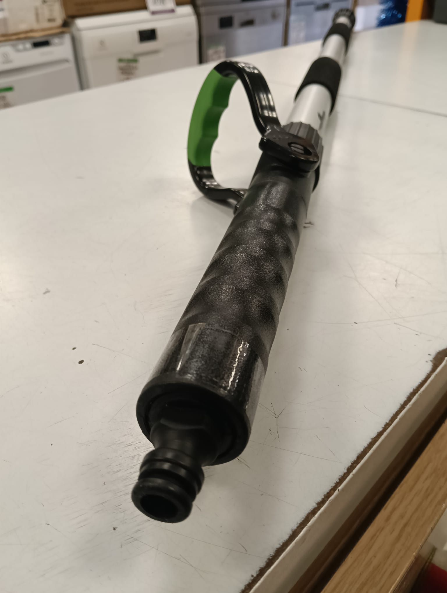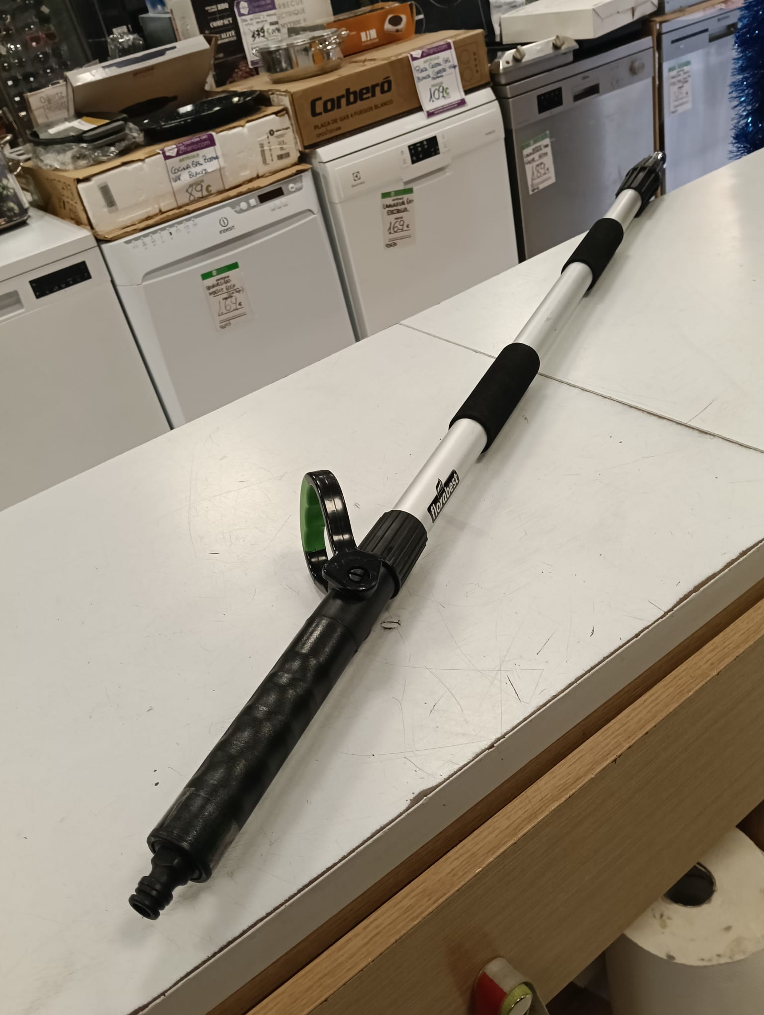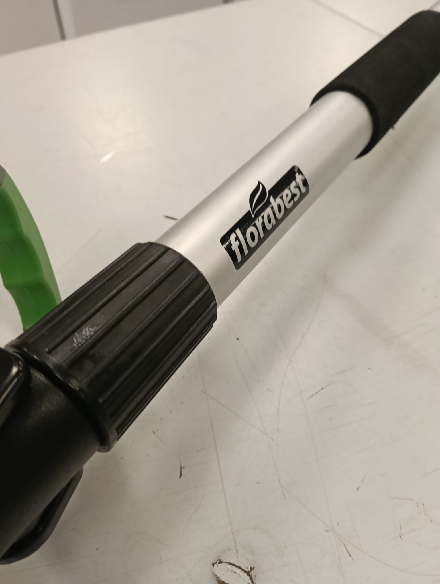 Adaptador telescópico rígido para conectar a la manguera de agua. Marca: Florabest. Material: Aluminio y plástico.