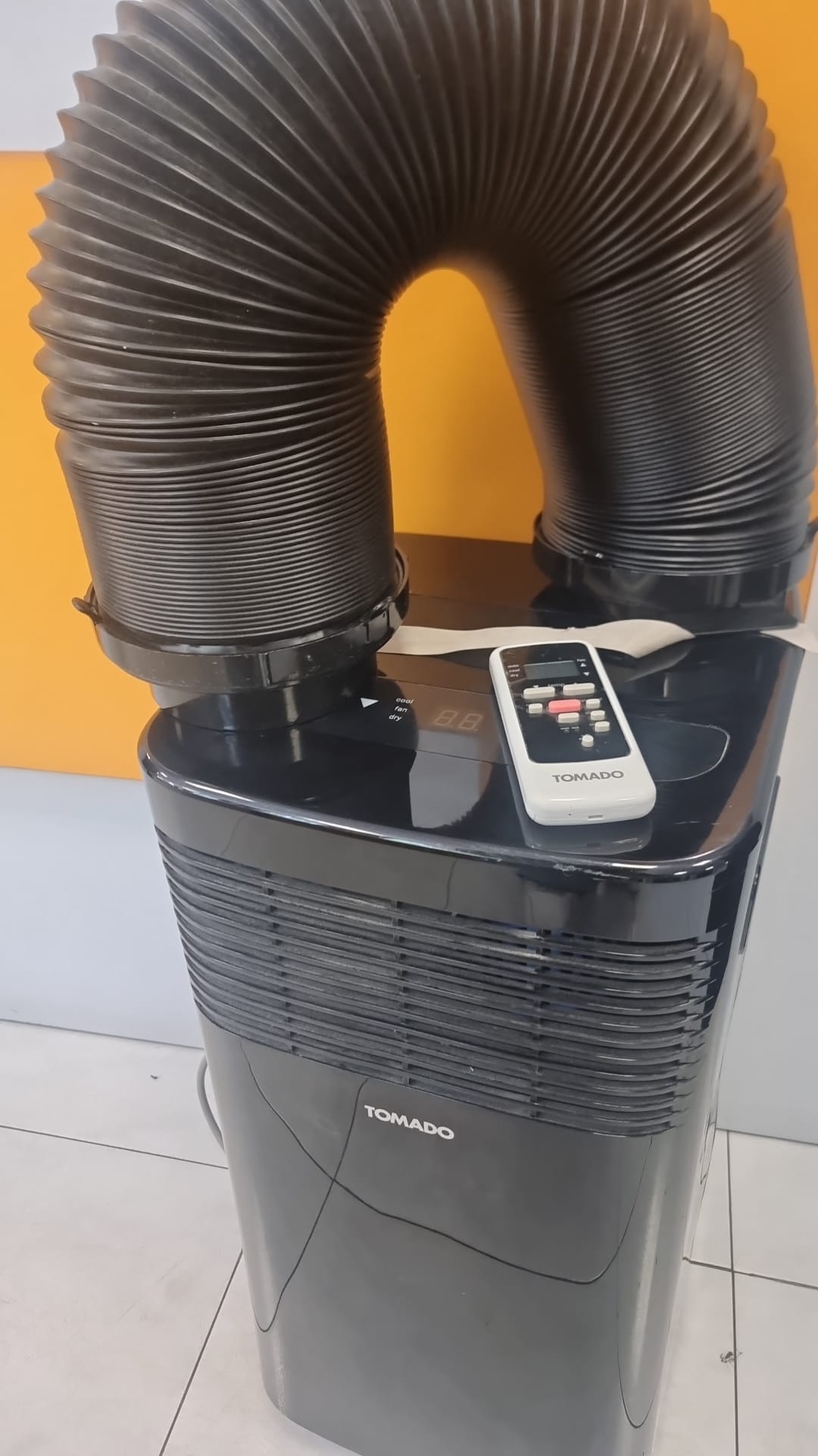 Aire acondicionado portátil TOMADO de 7000 BTU, en color negro. Está en buenas condiciones. Incluye tubo de escape. Control remoto incluido.