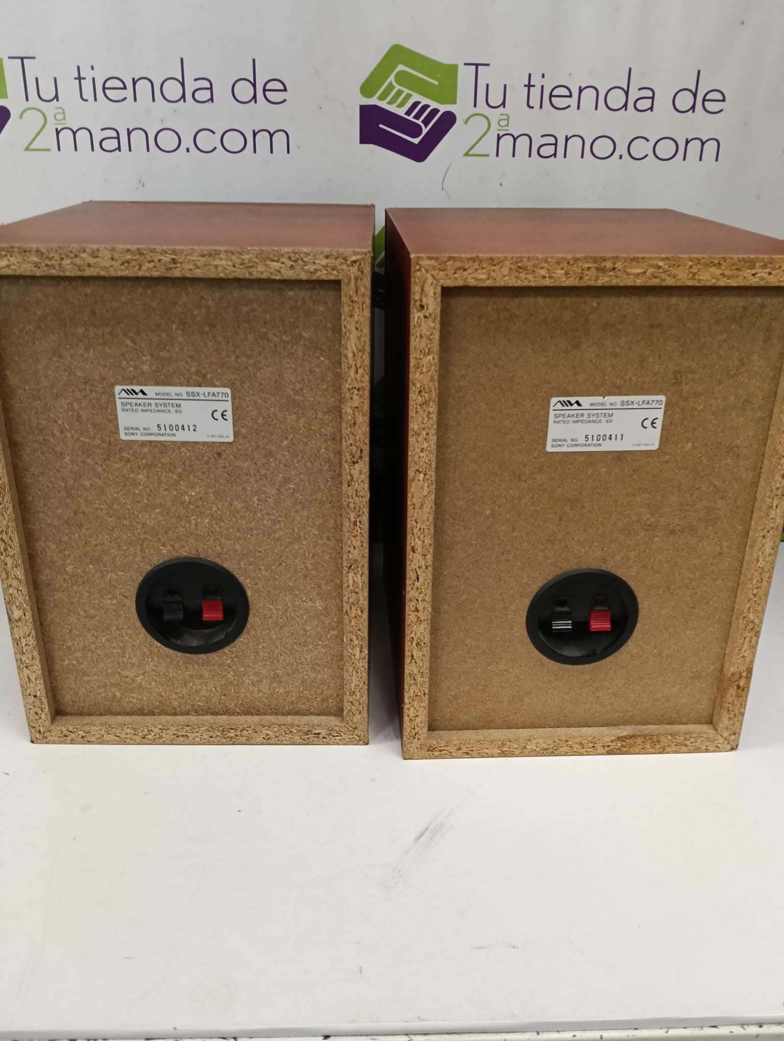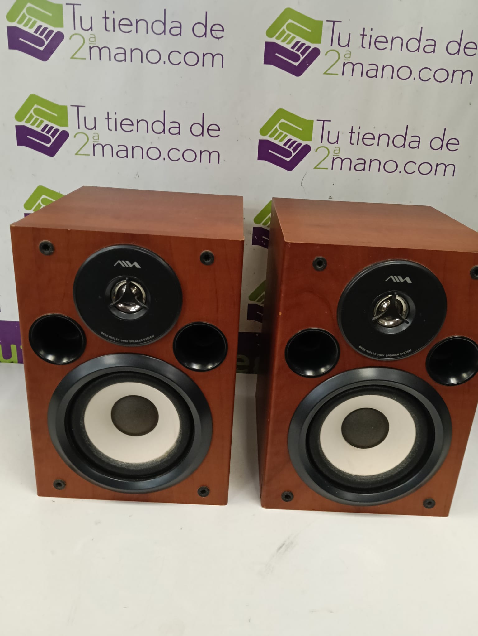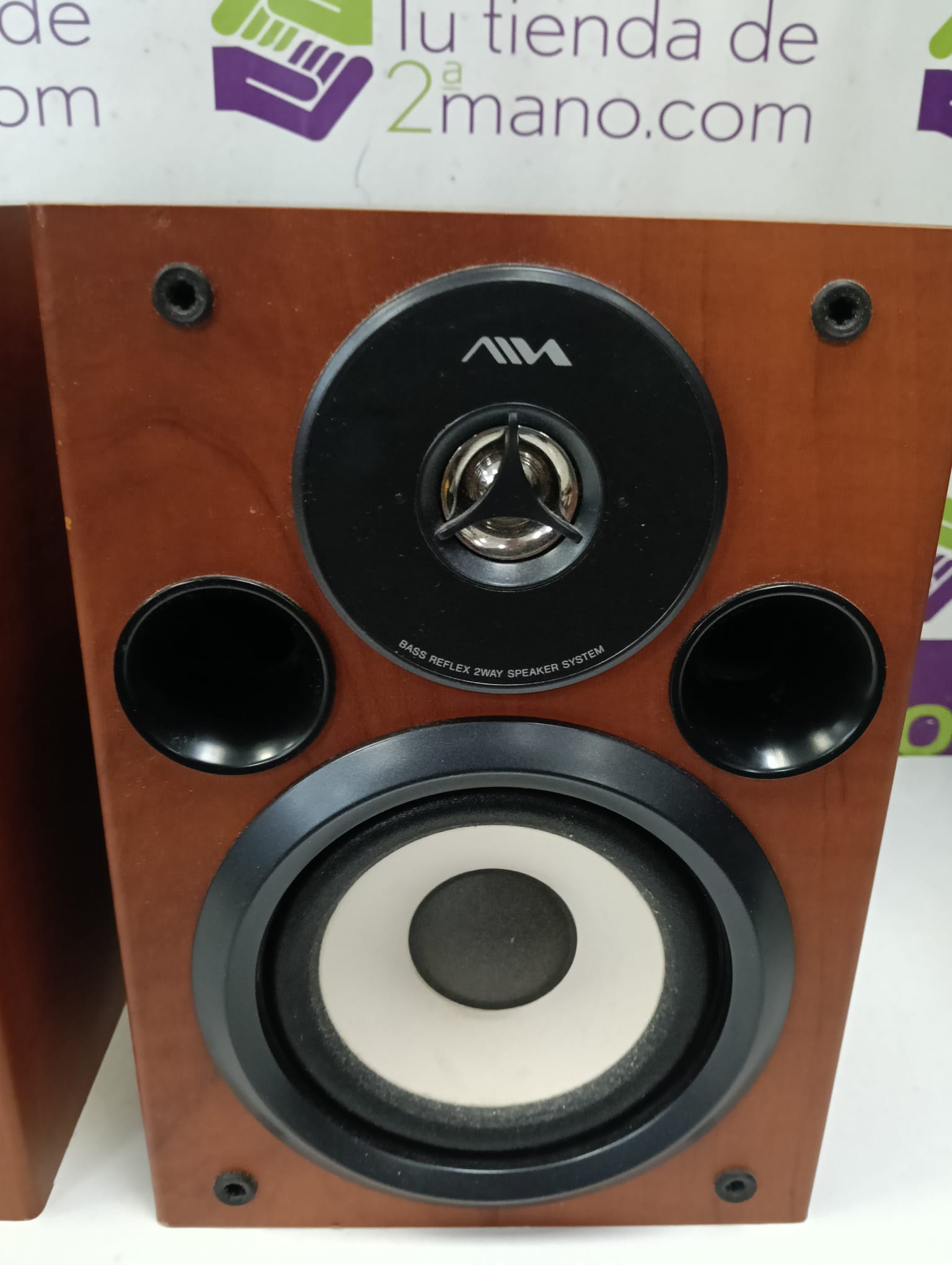 Pareja de altavoces Aiwa SSX-LFA770 con acabado en madera.Diseño de dos vías.Tweeter y woofer.Conexión por cable.
