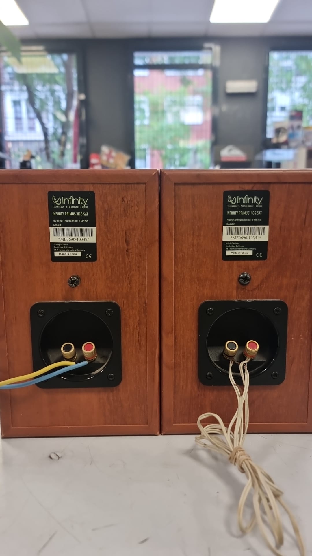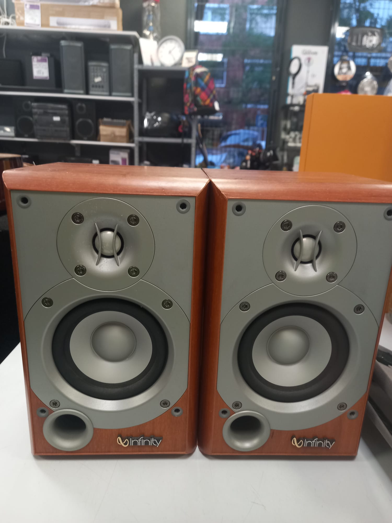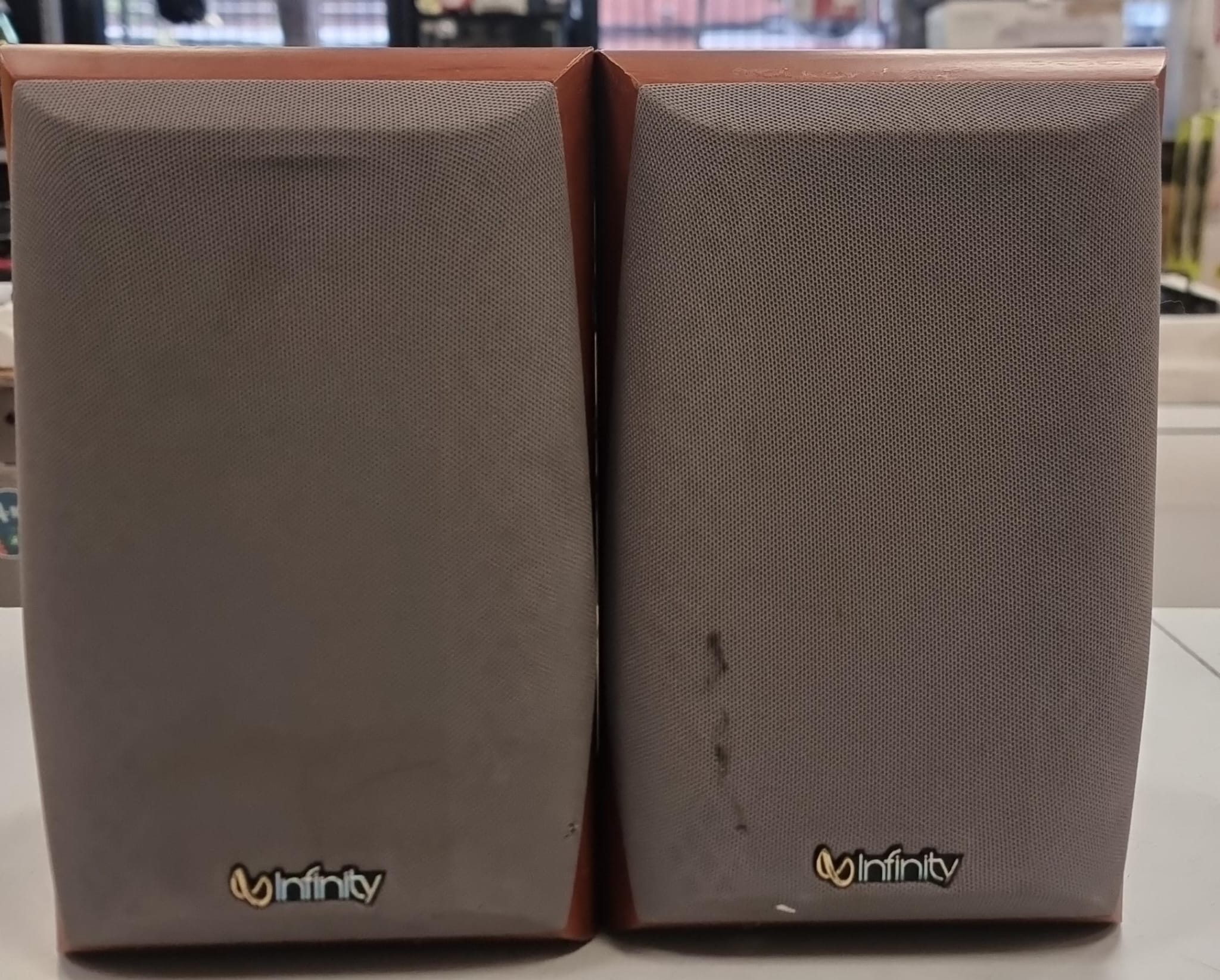 Par de altavoces Infinity Primus HCS SAT.Diseño compacto y elegante. Acabado en madera y rejilla gris.Altavoces Infinity primus HCS SAT. 8 OHMS.