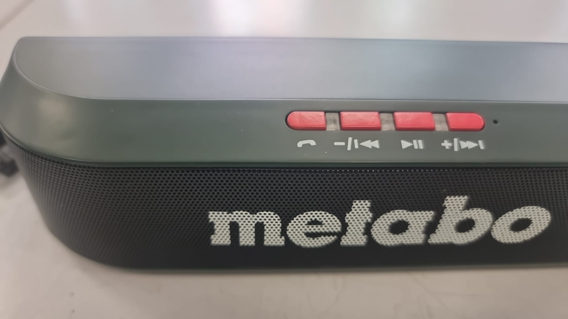 Altavoz Bluetooth Metabo en buen estado. Es compacto y ligero, ideal para llevarlo contigo a cualquier parte. Conexión inalámbrica Bluetooth. Incluye cable USB y cable auxiliar de audio de 3.5mm.