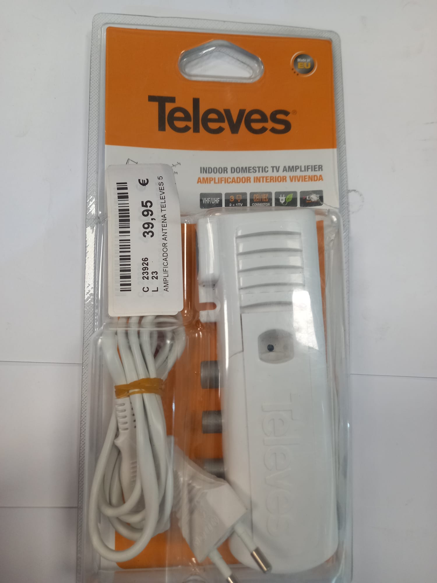 Amplificador de antena marca Televes modelo 552840. 3 salidas (2+TV), para ampliar la red doméstica de televisión terrestre. Fuente conmutada integrada de alto rendimiento y consumo reducido.