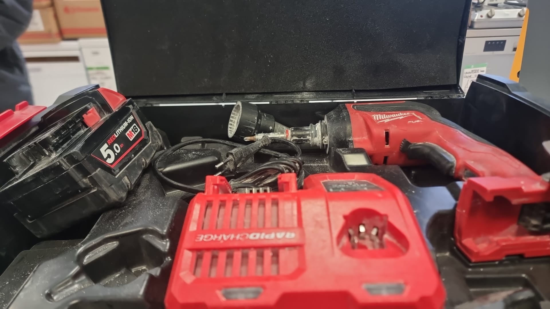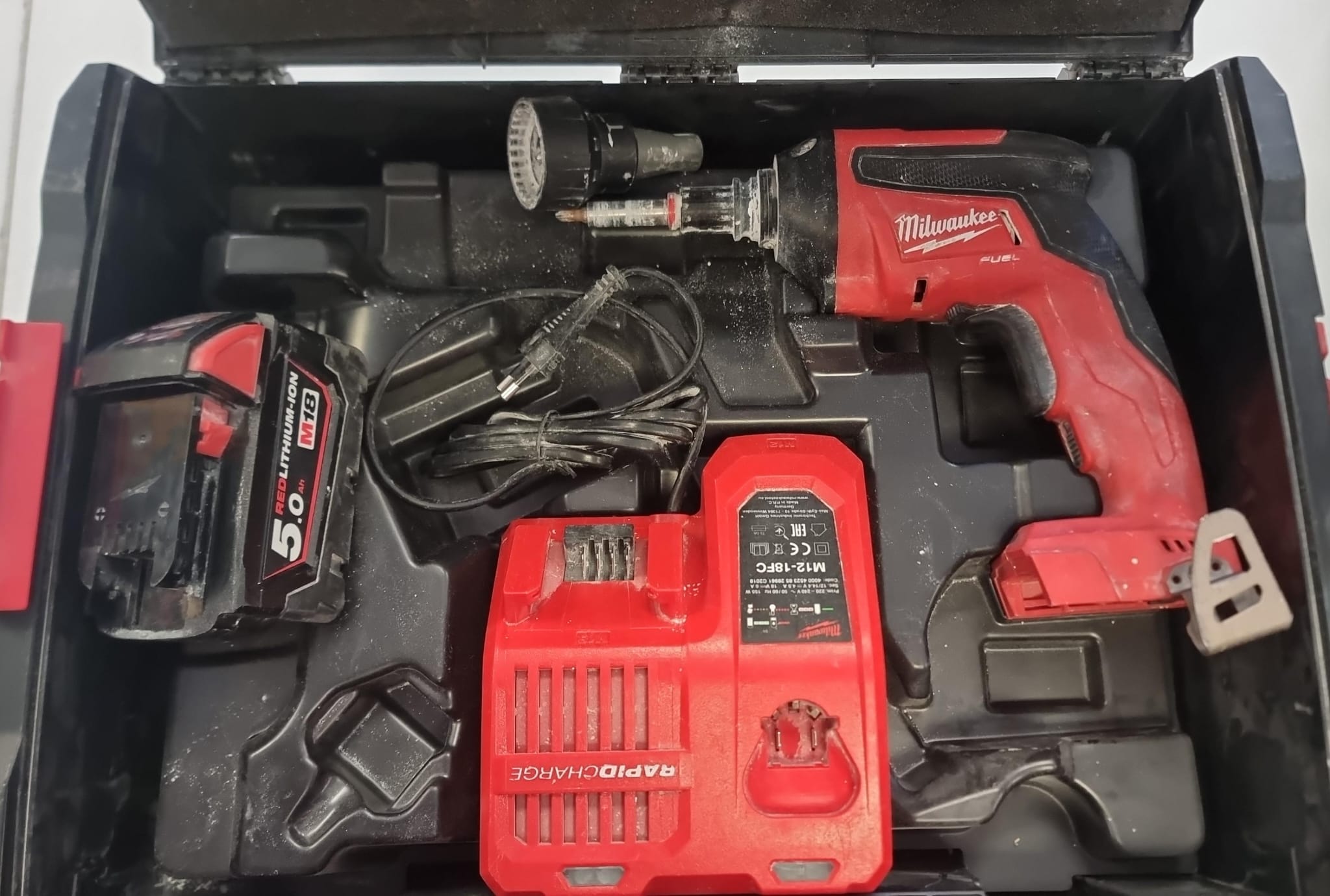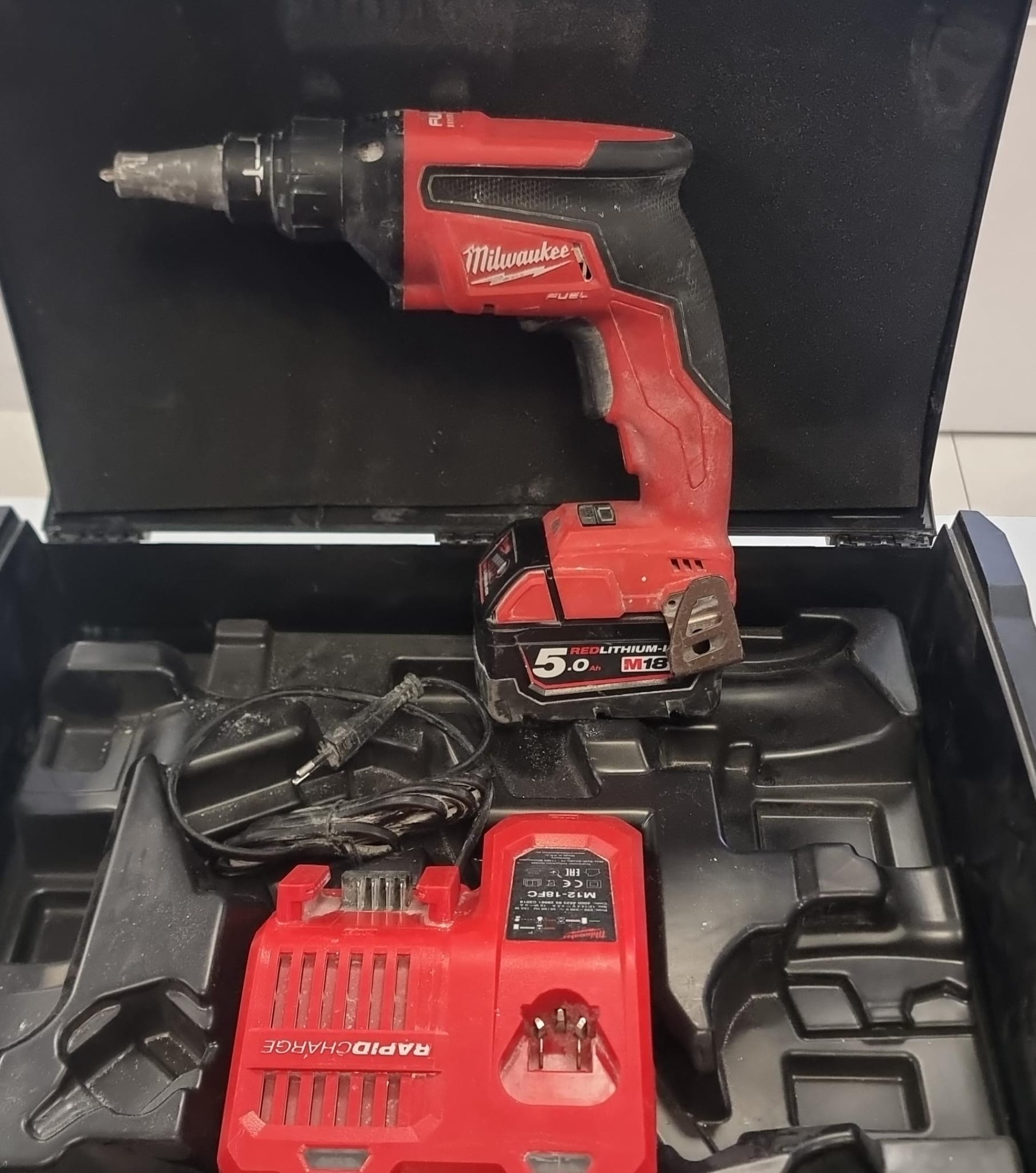 Se vende atornillador Milwaukee M18FSG-OX con batería de 5.0Ah y cargador. es la herramienta definitiva para profesionales del cartón-yeso que trabajan con ritmo, precisión y exigencia. Diseñado para quienes montan estructuras de placa de yeso a diario, este modelo sin cable combina potencia de 18V, activación inteligente y un diseño robusto que permite atornillar cientos de placas sin perder velocidad ni precisión.
