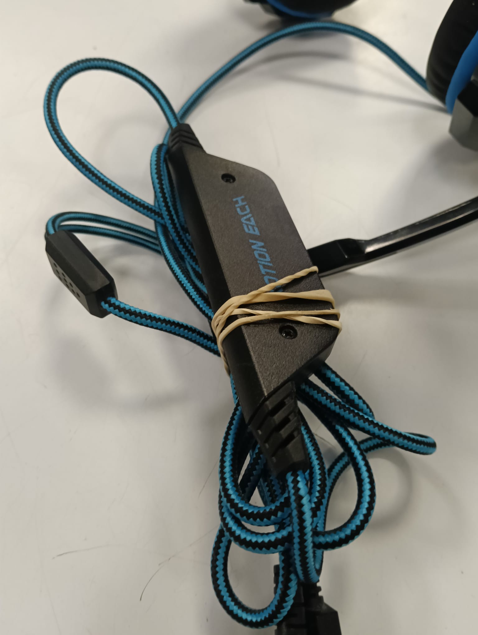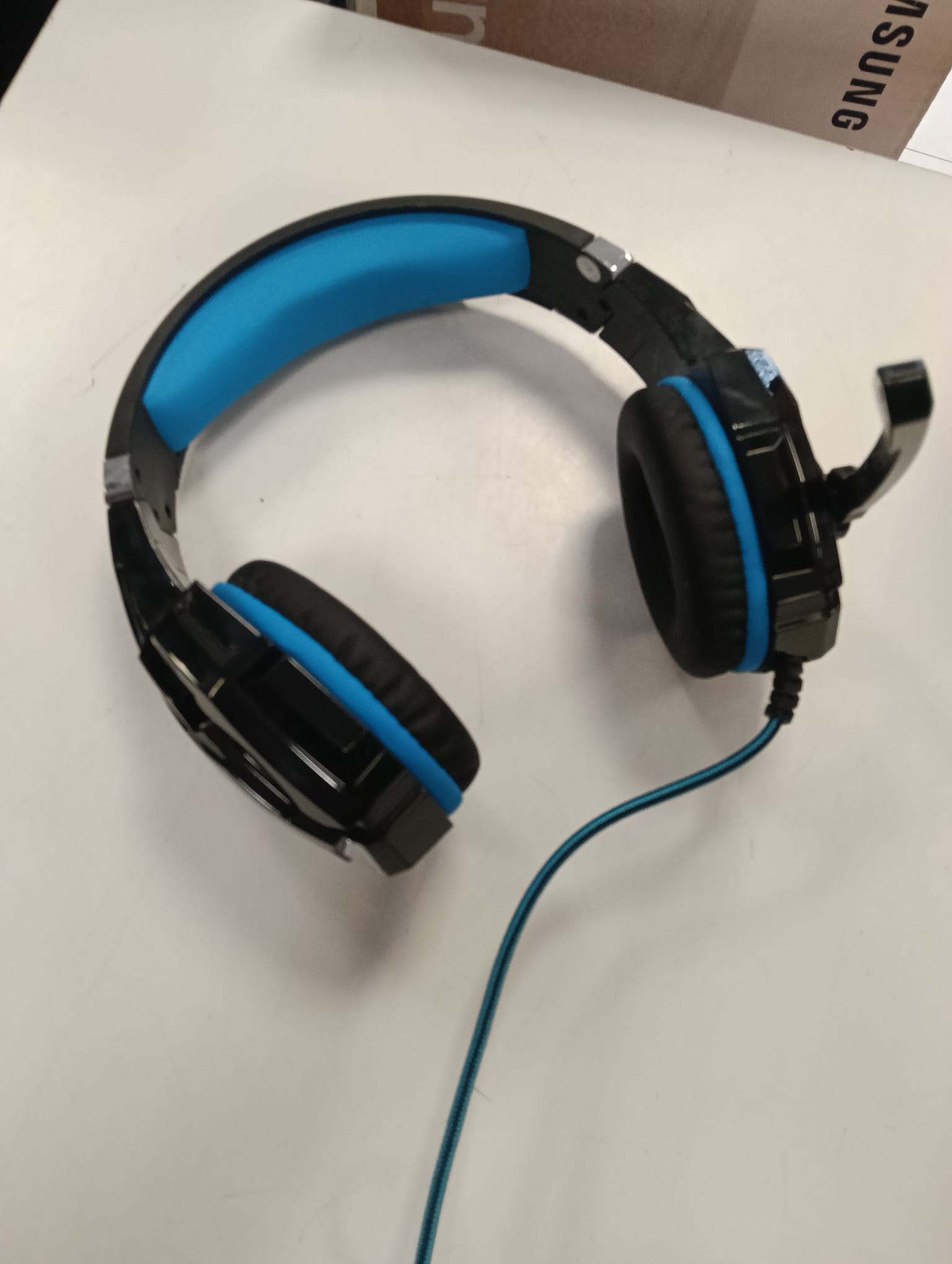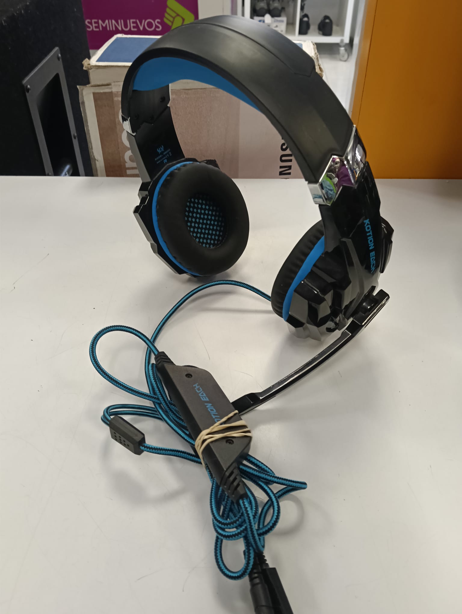 Auriculares gaming con un diseño moderno en negro y detalles en azul.Diadema ajustable. Micrófono integrado. Cable trenzado duradero. Control de volumen en línea.