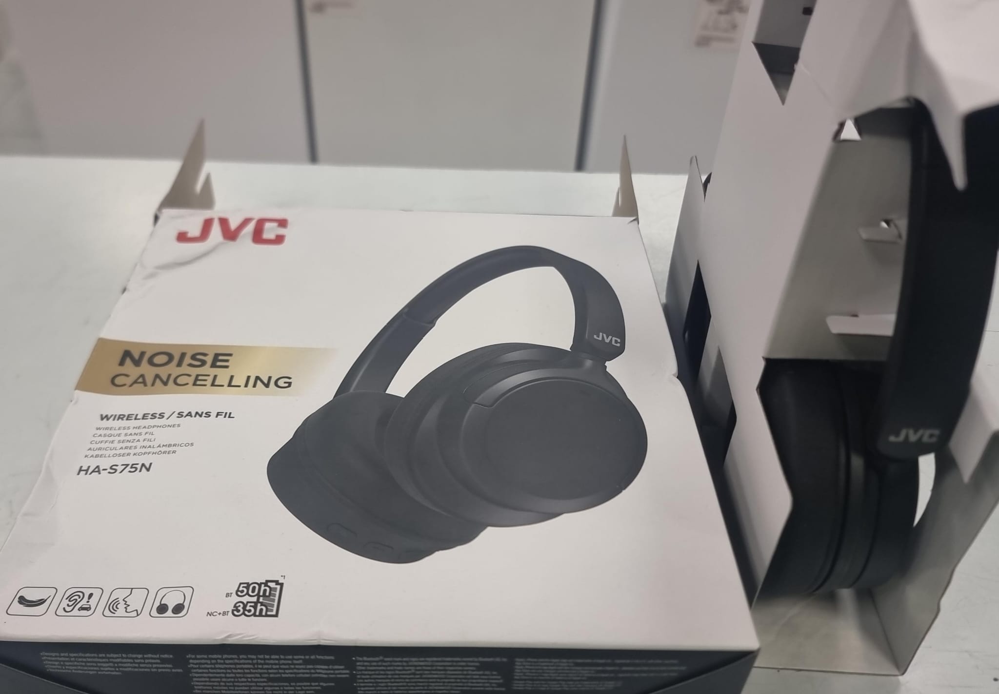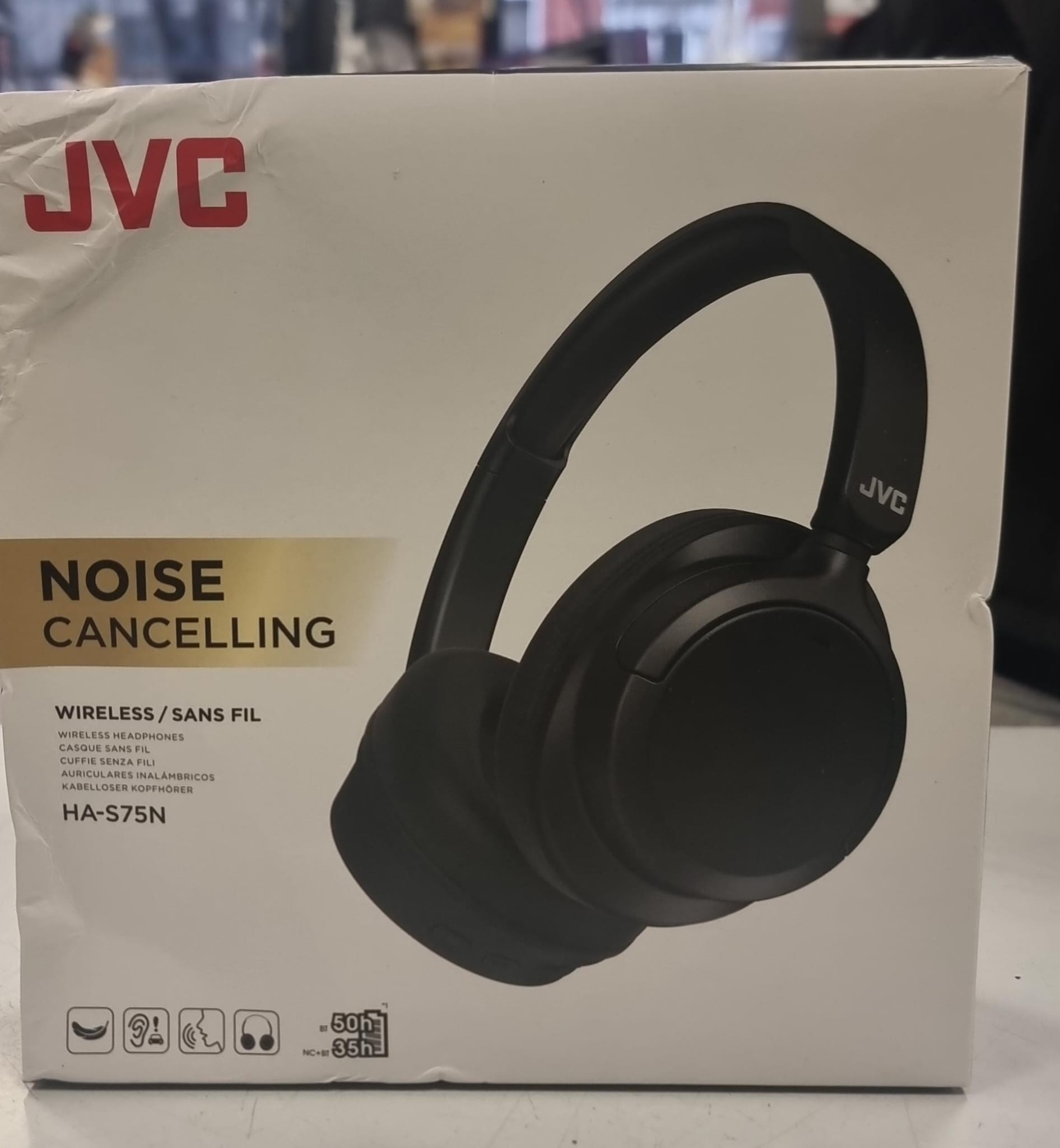 Auriculares inalámbricos JVC con cancelación de ruido.Modelo: HA-S75N Tecnología Noise Cancelling Conexión inalámbrica (Bluetooth)Hasta 50 horas de autonomía (35h con NC activado).