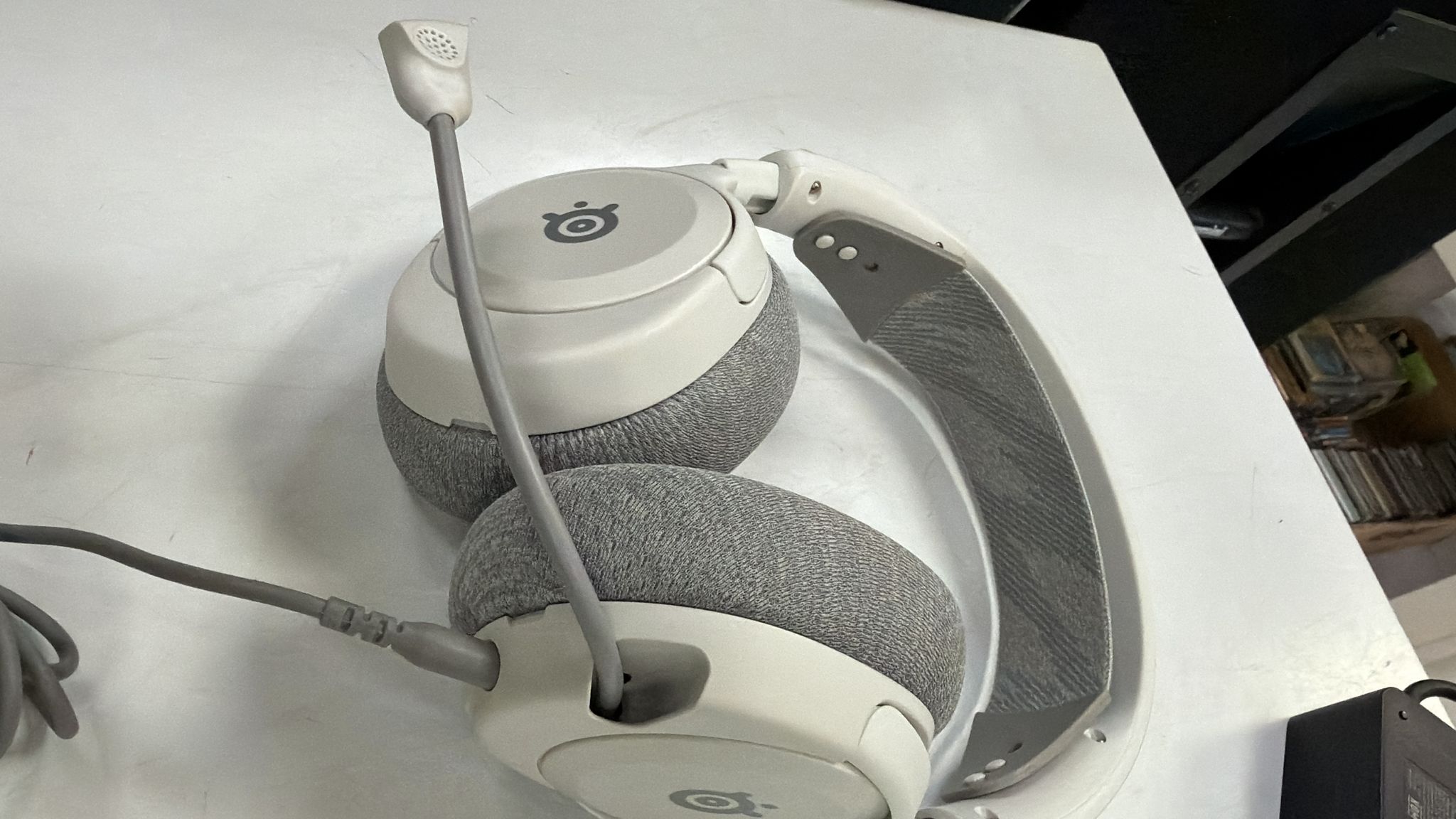 Auriculares gaming SteelSeries Arctis Nova 1 en color blanco y gris. Diseñados para una experiencia de juego inmersiva.Diadema ajustable con banda de tela. Almohadillas de tela transpirable. Micrófono retráctil. Conexión jack de 3.5mm.