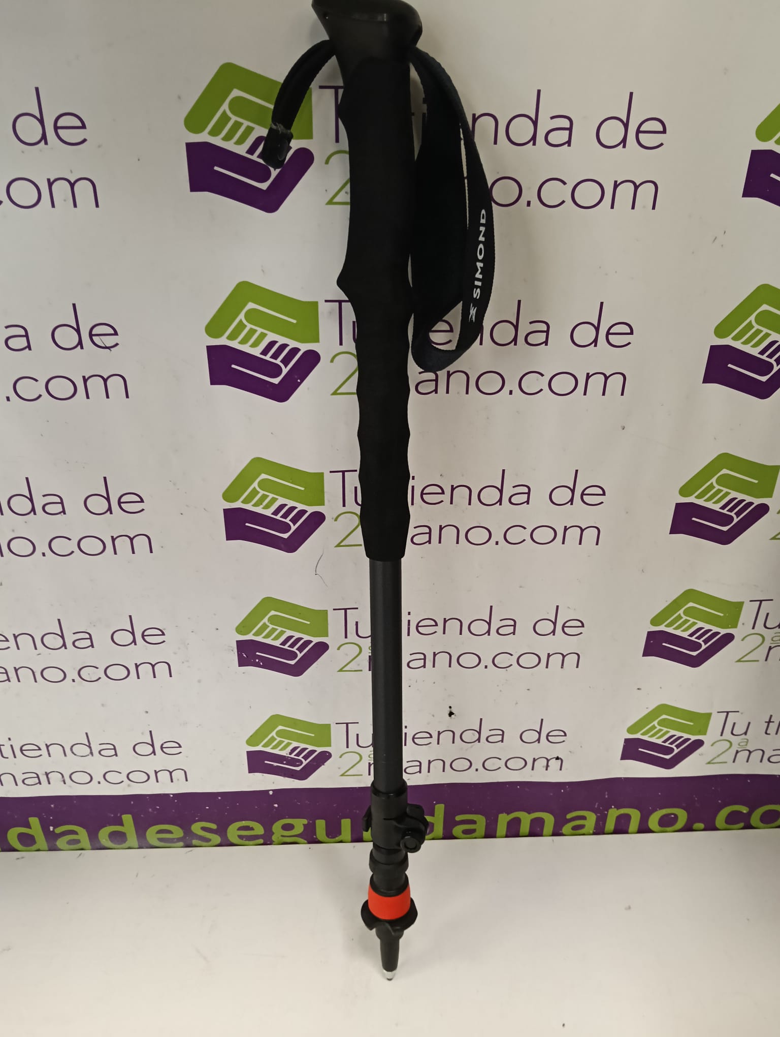 Bastón de trekking de la marca Simond, modelo 500 con sistema antishock. Empuñadura ergonómica. Correa ajustable.Punta de goma.Sistema de ajuste de altura.