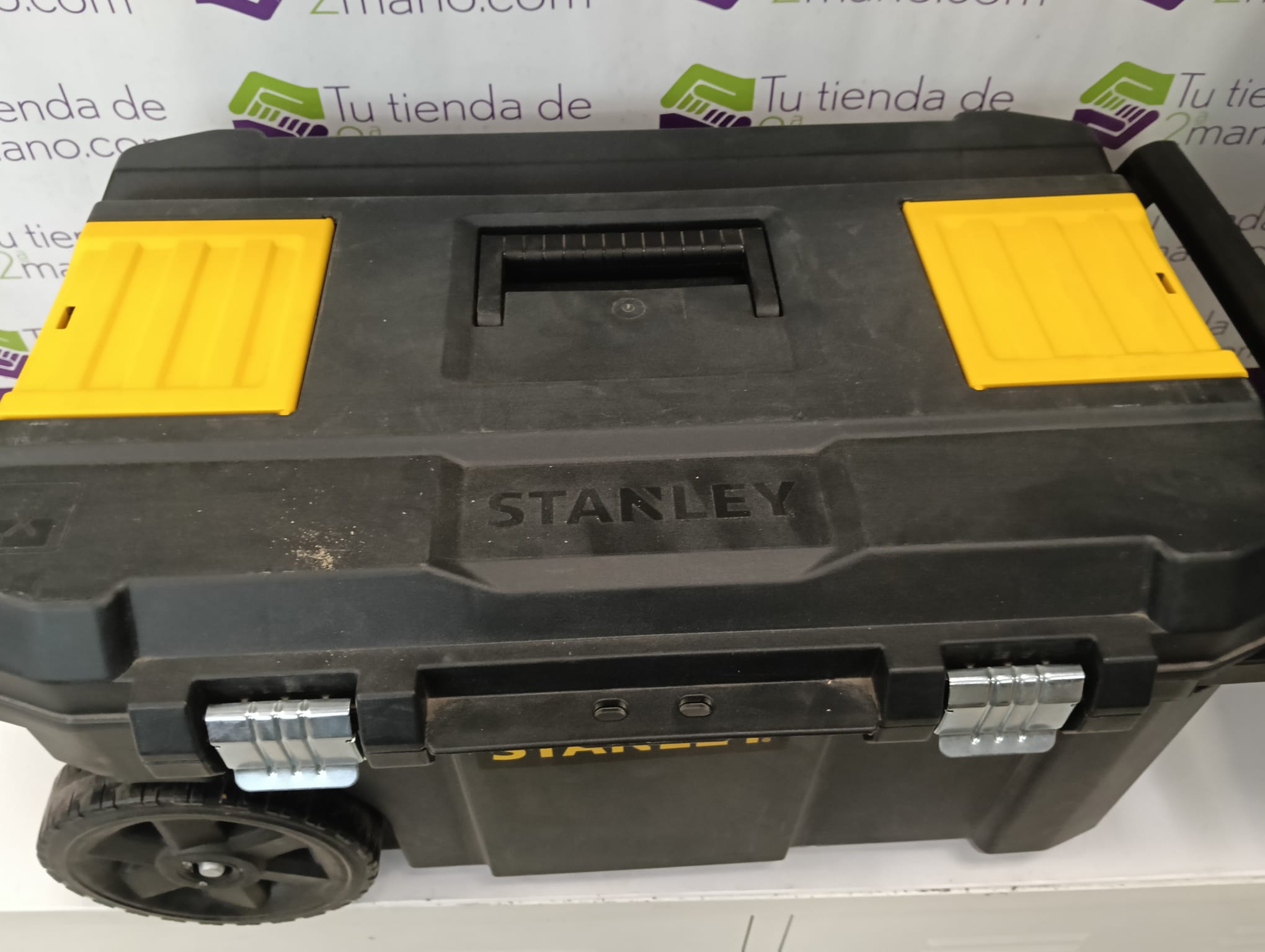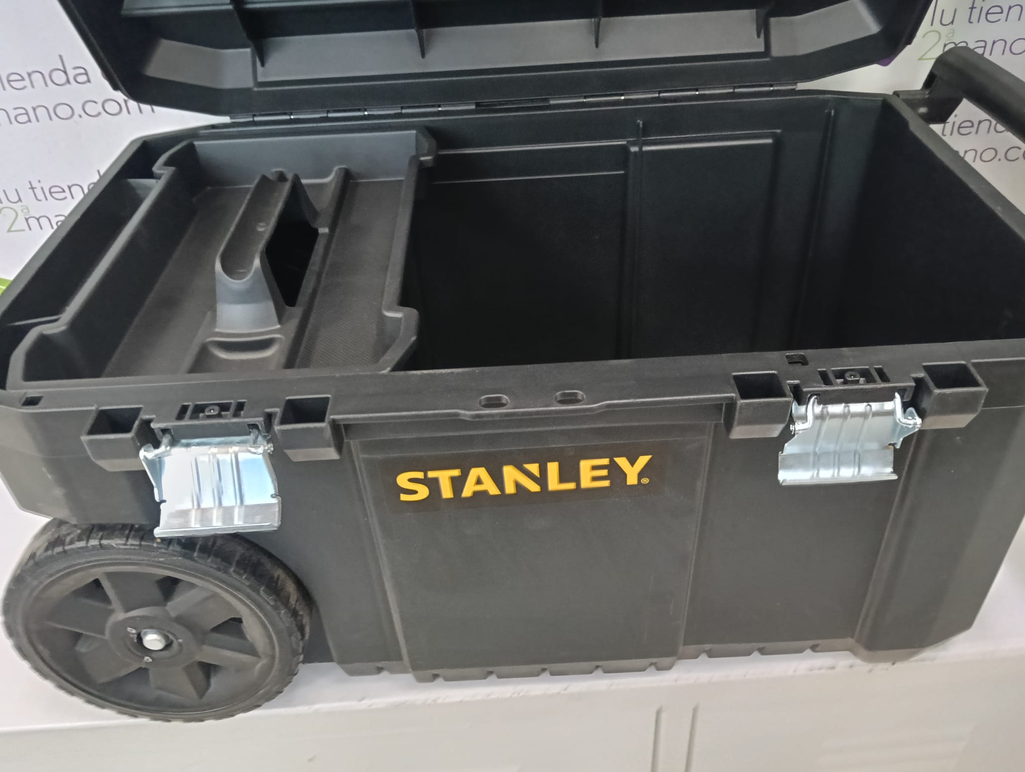 Caja de herramientas Stanley de gran capacidad, ideal para organizar y transportar tus herramientas. Cuenta con ruedas para facilitar su movilidad.Color negro y amarillo.Asa extensible.Cierres metálicos resistentes.