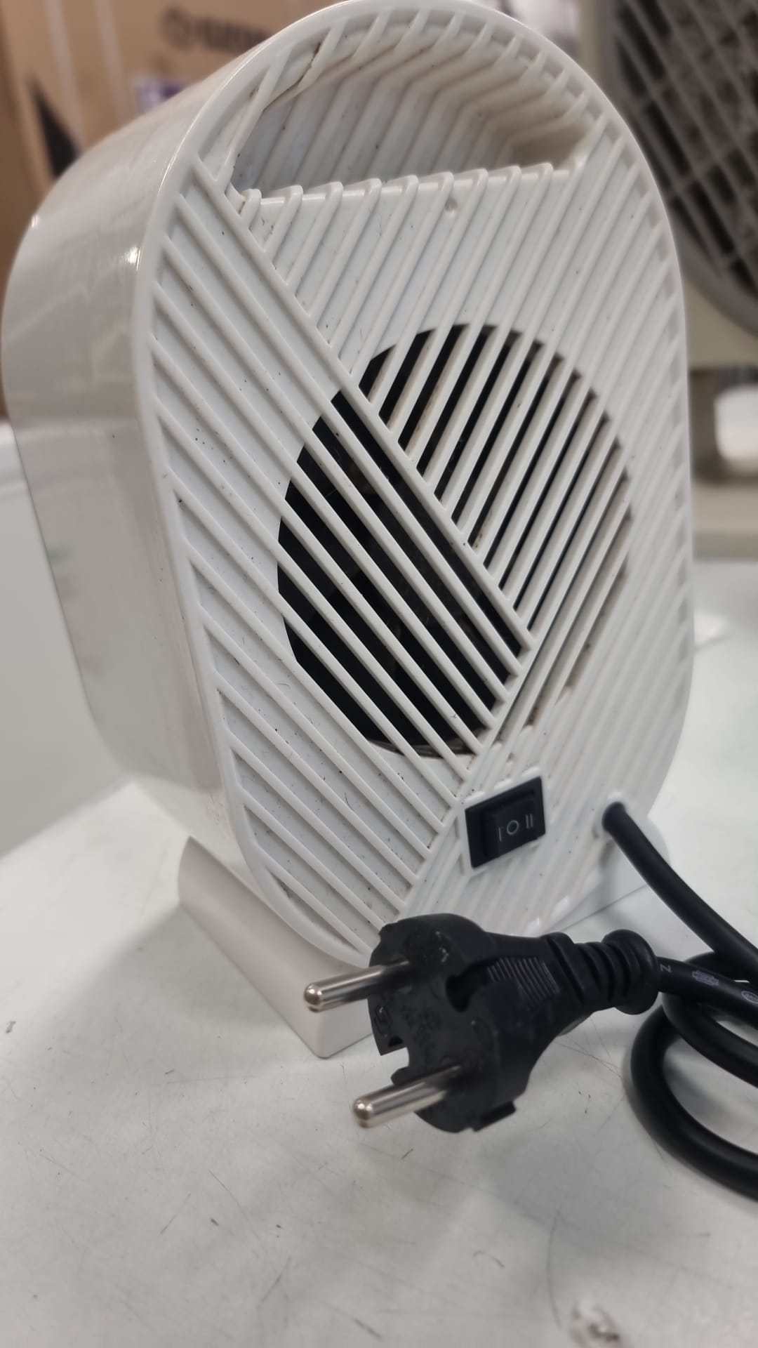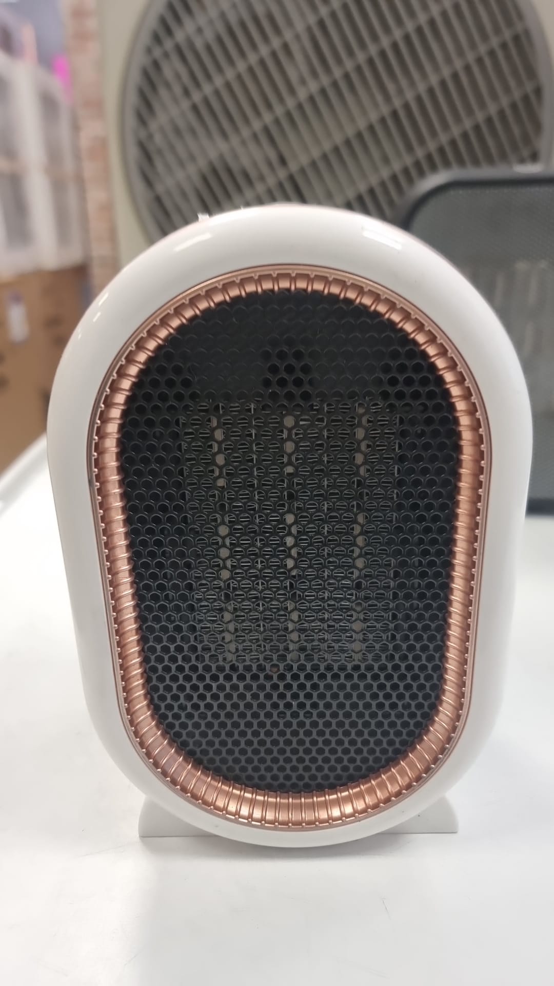 Calefactor compacto con un diseño moderno y elegante.Acabado en blanco y detalles dorados. Fabricado con materiales resistentes de metal y plástico.