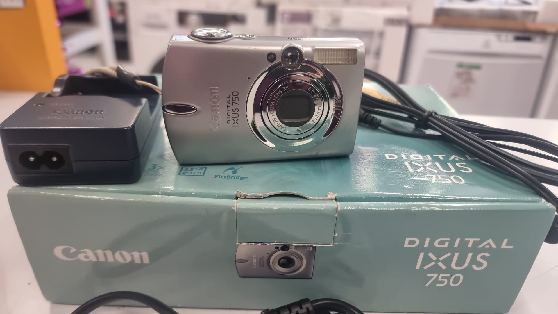 Cámara digital Canon IXUS 750 en color plata. Compacta y fácil de usar. Zoom óptico 3x.Pantalla LCD de 2.5 pulgadas.