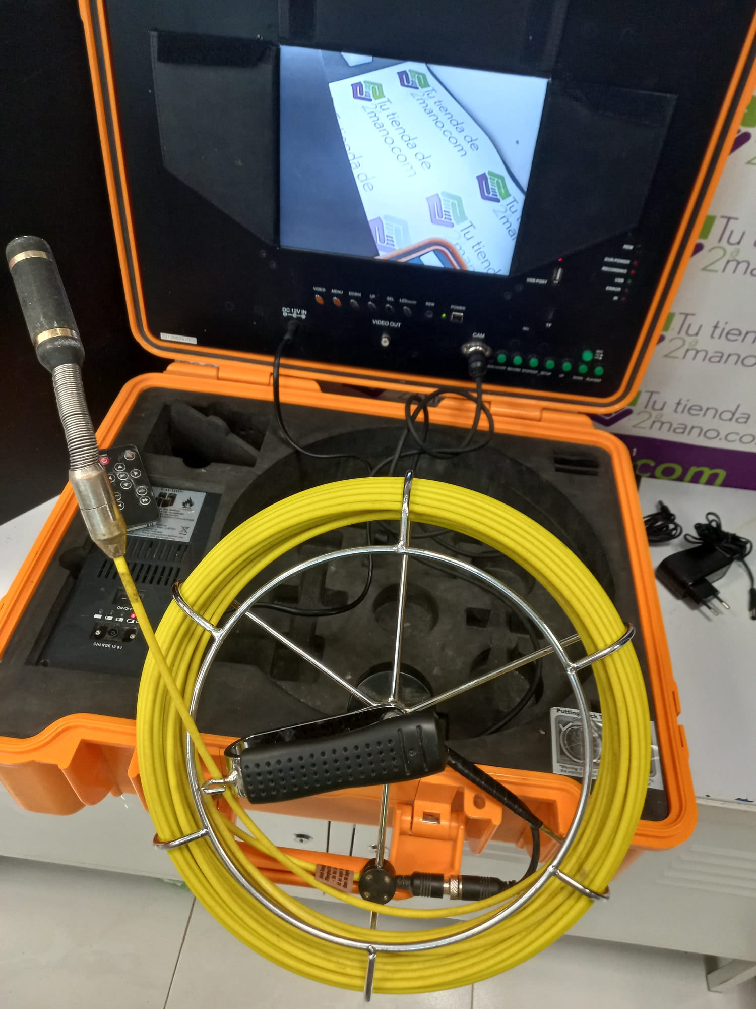 Cámara de inspección de tuberías con un objetivo de 5 mm podemos inspeccionar tuberías de un diámetro muy reducido como tuberías de 12 mm, 15 mm, etc, con una calidad de imagen excelente. Cable de 30 metros. Montada en una maleta totalmente ergonómica, ultra ligera, ultra fuerta y reforzada en sus cantos, acolchada en su interior para proteger sus accesorios y de muy fácil transporte. Sumergible hasta una presión de 2 bares.