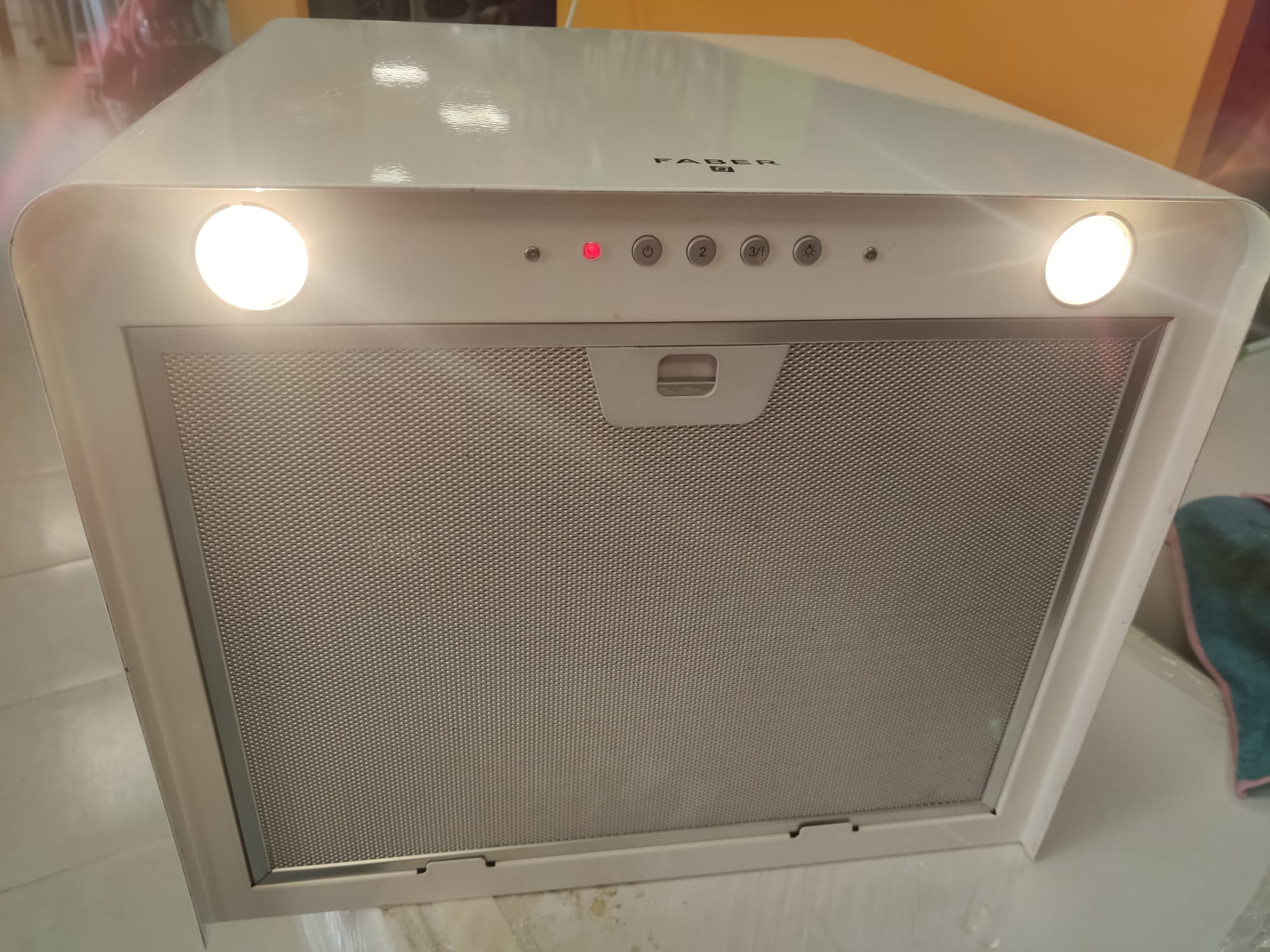 Campana de cocina marca Faber, modelo LITHOS EG6VHA4. Medida especial de ancho de 45cm. Profundidad de 38cm. Potencia de 140W. 69db de ruido.