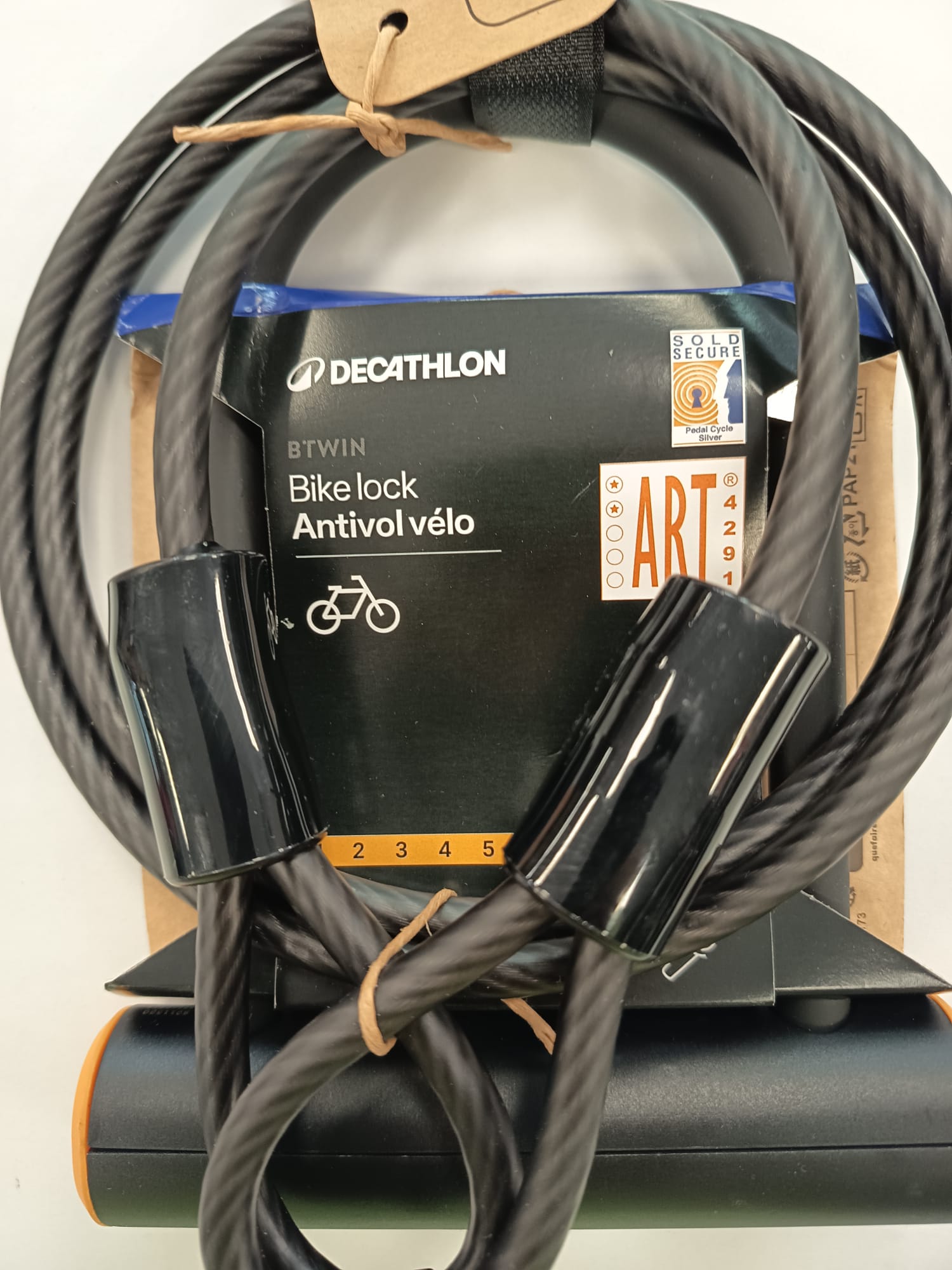 Set candado de alta seguridad, muy resistente y ultracompacto. Ligero y fácil de transportar, permite atar el cuadro de la bicicleta a un punto fijo y proteger las ruedas o el sillín. Nuevo a estrenar.
