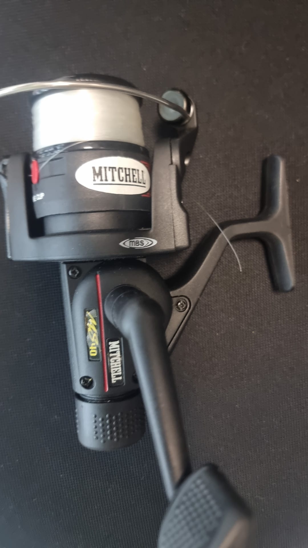 Carrete de pesca de la marca Mitchell, modelo MS40. Diseño en color negro.Incluye bobina con hilo de pesca.