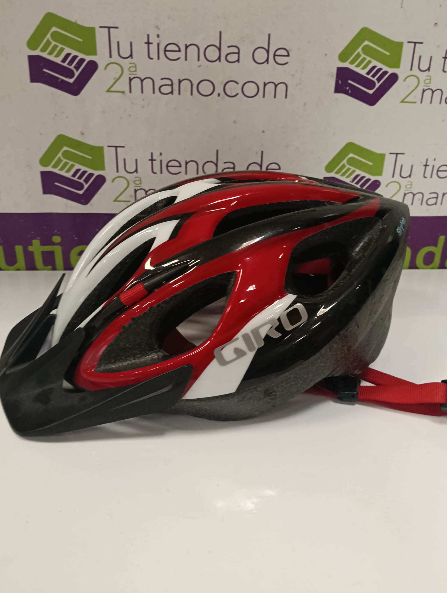Casco de bicicleta Giro Skyline G092X en color rojo, blanco y negro. Diseñado para ofrecer protección y comodidad.Diseño aerodinámico. Visera integrada Múltiples ventilaciones.