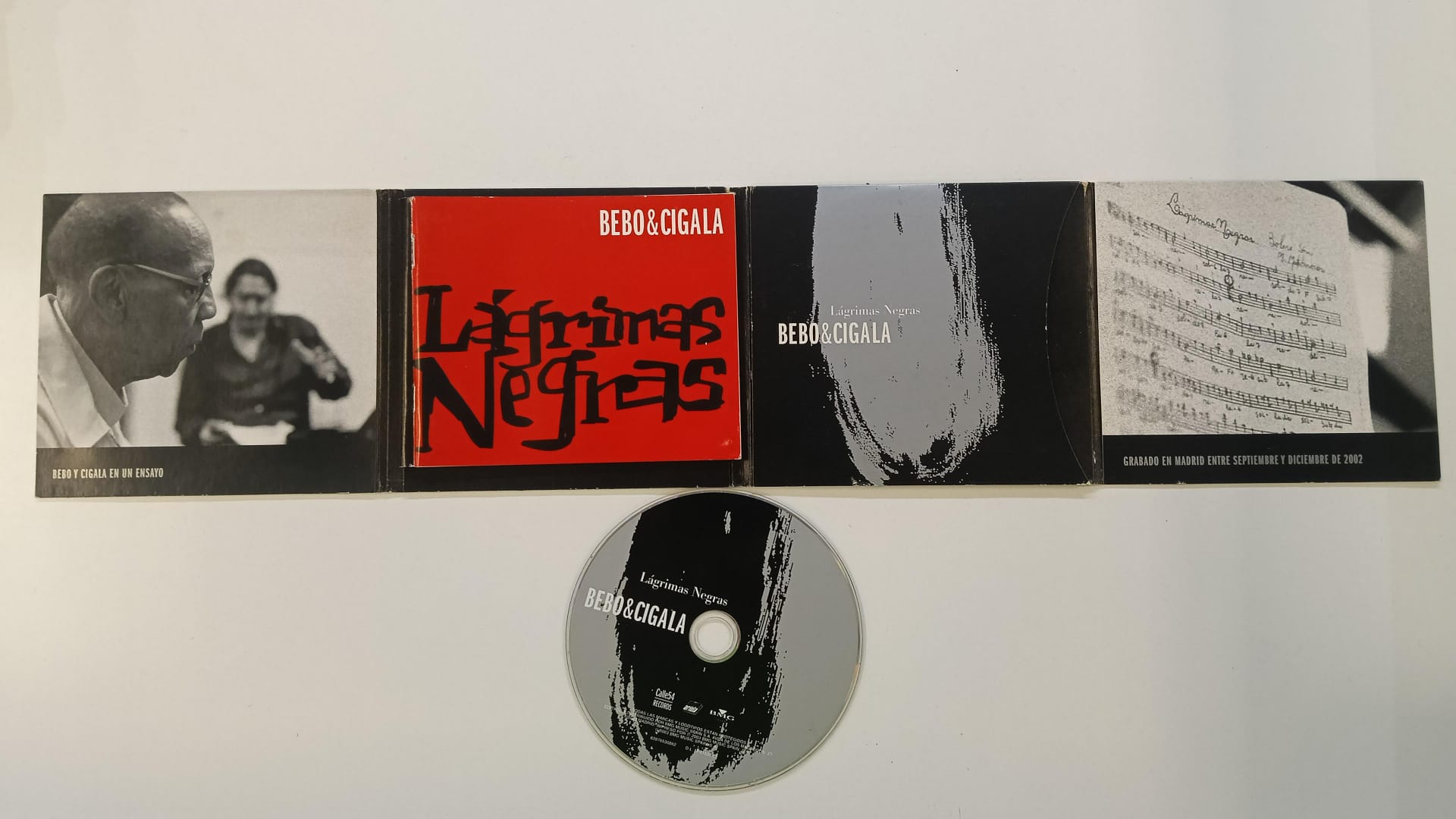 CD de música Lágrimas Negras de Bebo y Cigala. Género: Latino. Signos visibles de uso.