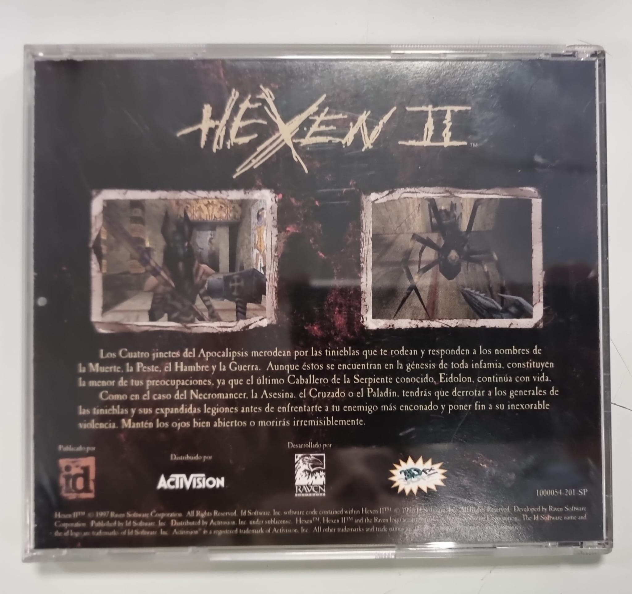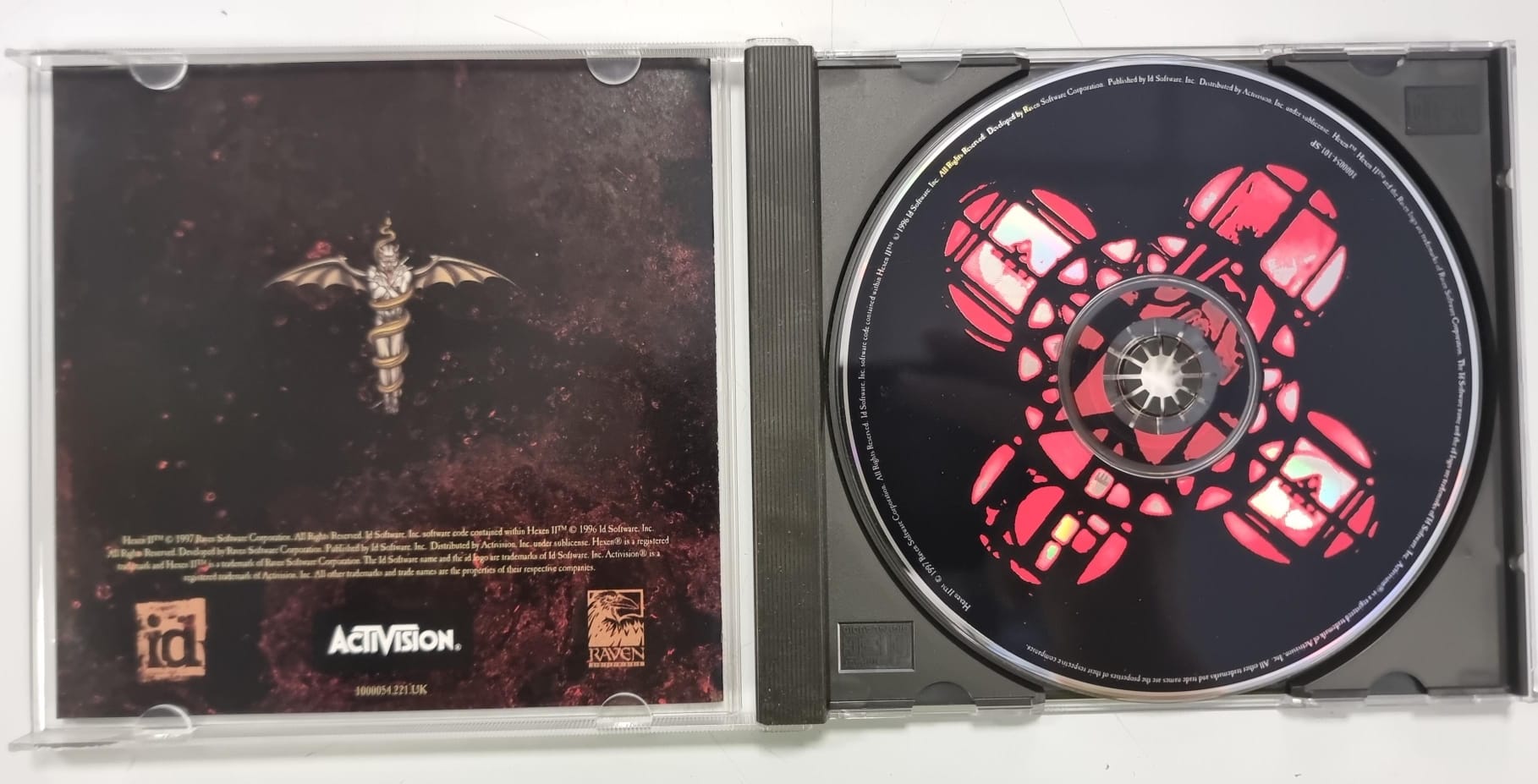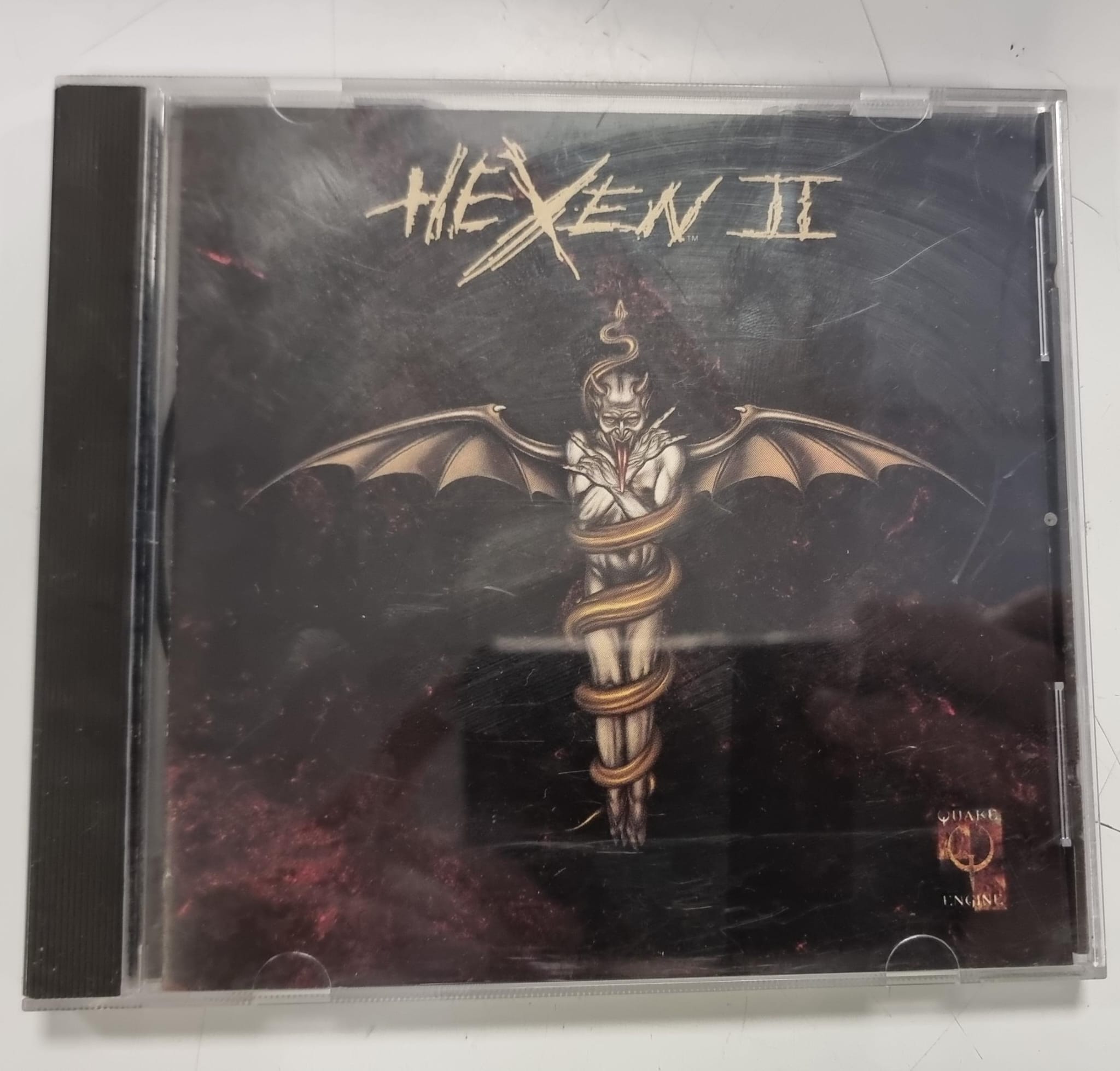CD del videojuego Hexen II. Portada con diseño de demonio alado.Incluye el logo de Quake Engine.