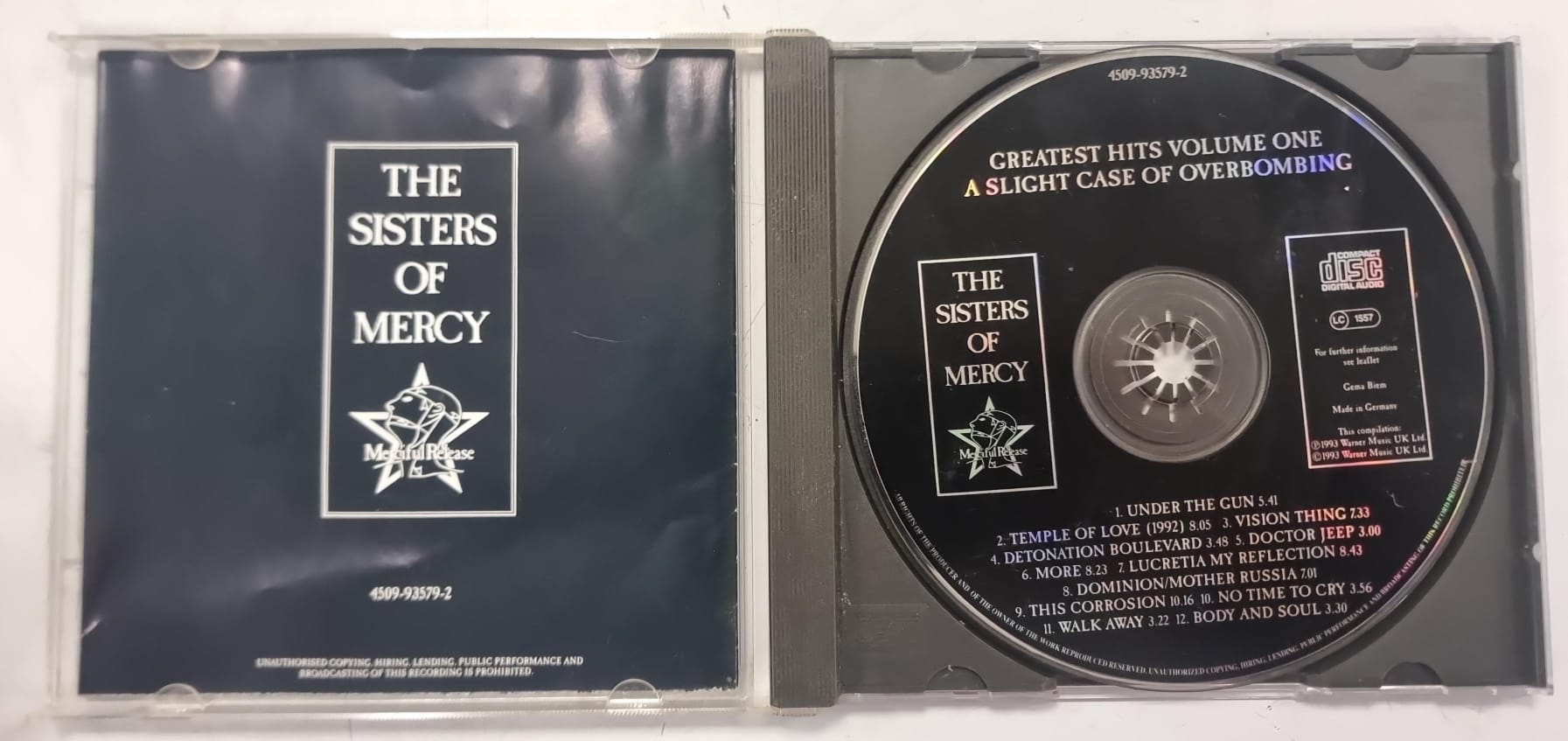 Este CD recopilatorio de The Sisters of Mercy incluye sus grandes éxitos.Título: Greatest Hits Volume One. Contiene A Slight Case of Overbombing.