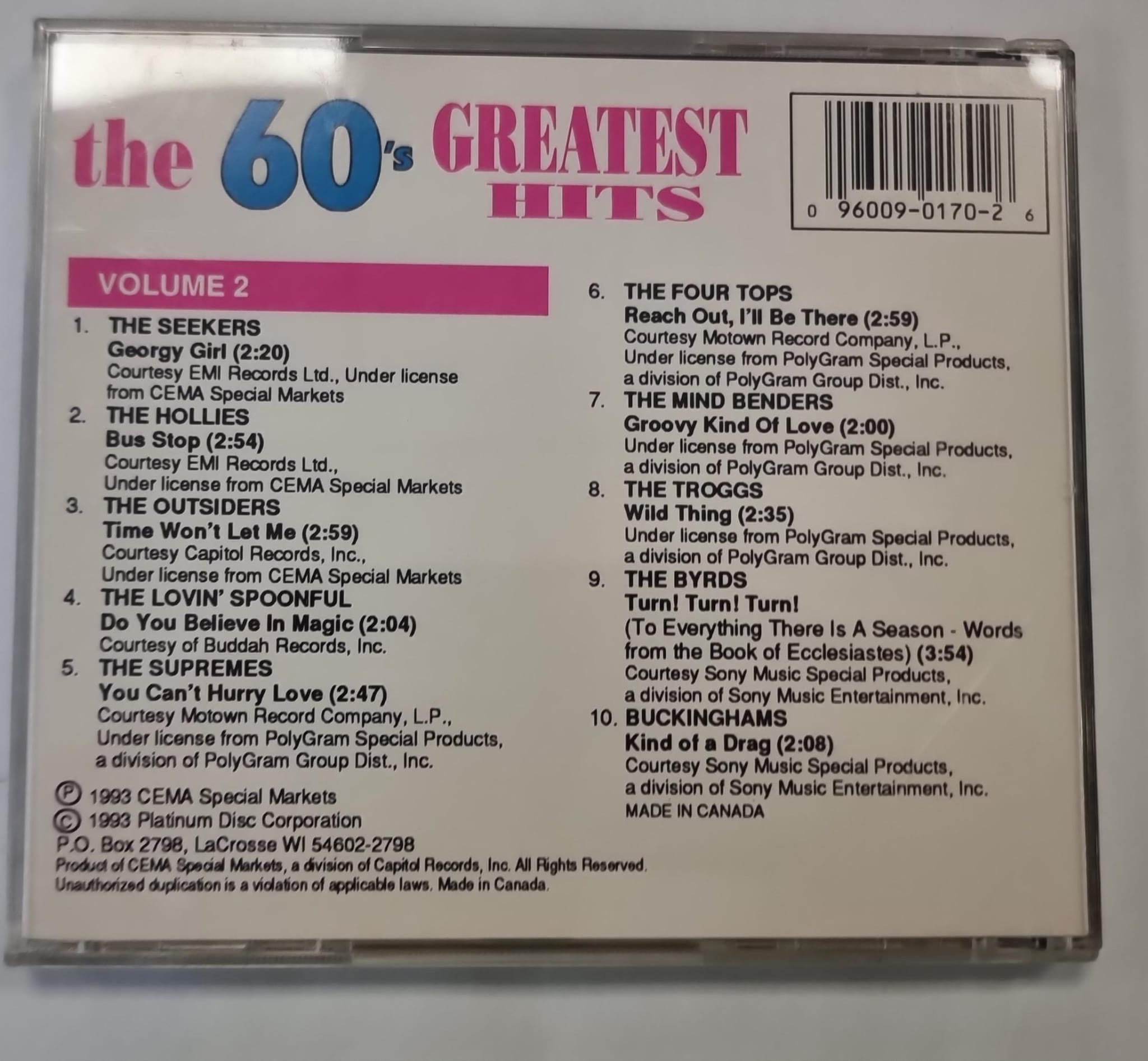 Compilación de éxitos de rock 'n roll de los años 60.Volumen 2 de la serie Platinum's.Edición especial para coleccionistas.Incluye artistas originales Referencia: S21-56981.