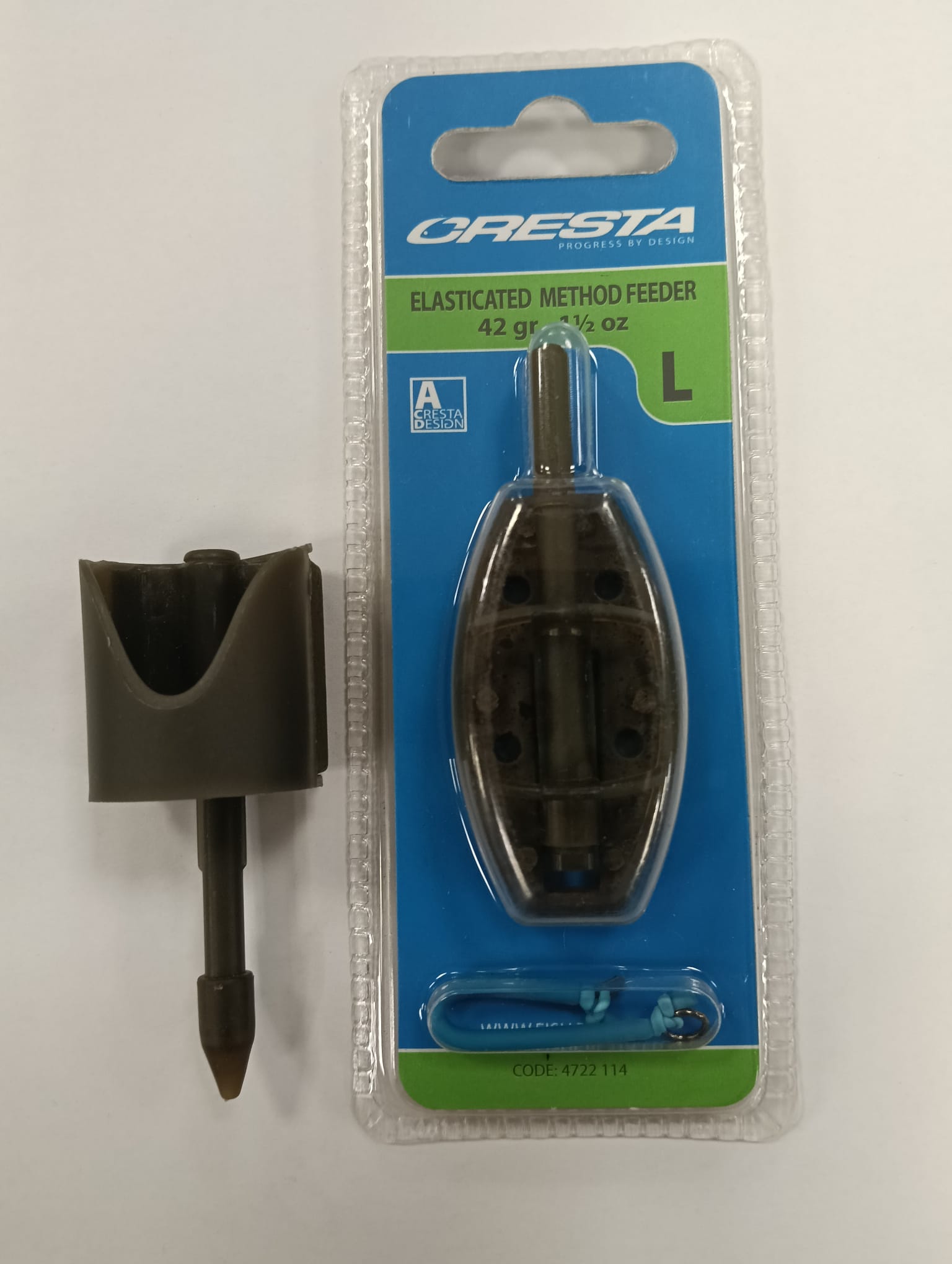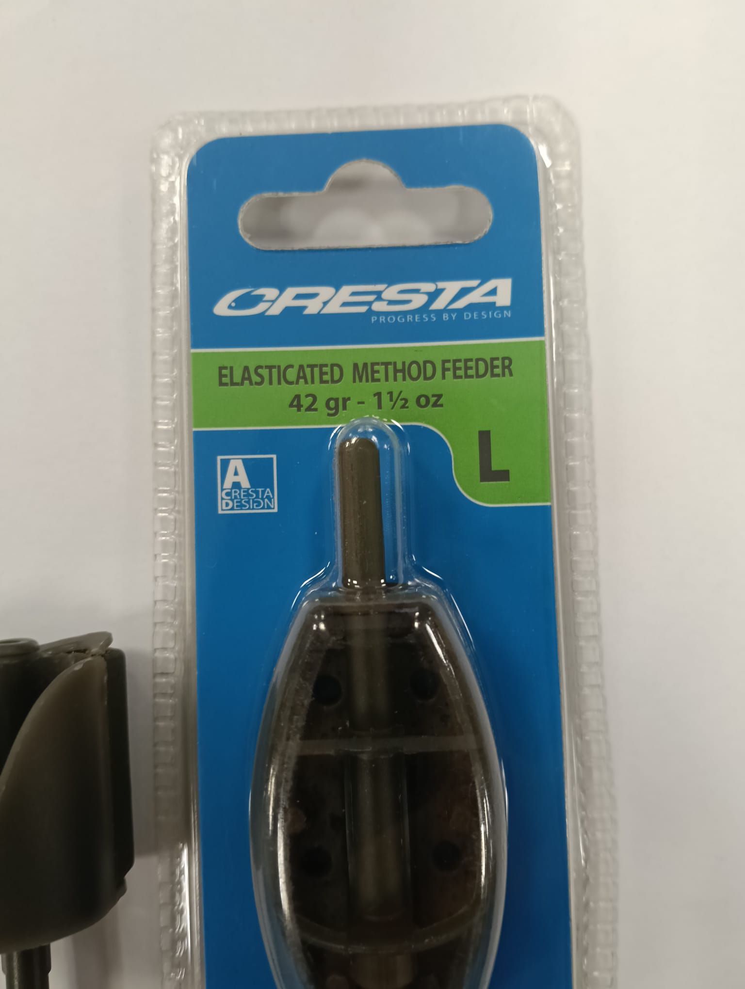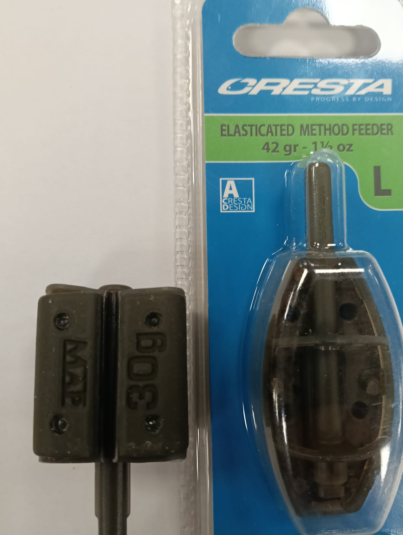 Lote de dos cebadores Cresta para pesca. Un cebador de 30 gramos.Un cebador de 42 gramos (L). Modelo: Elasticated Method Feeder.