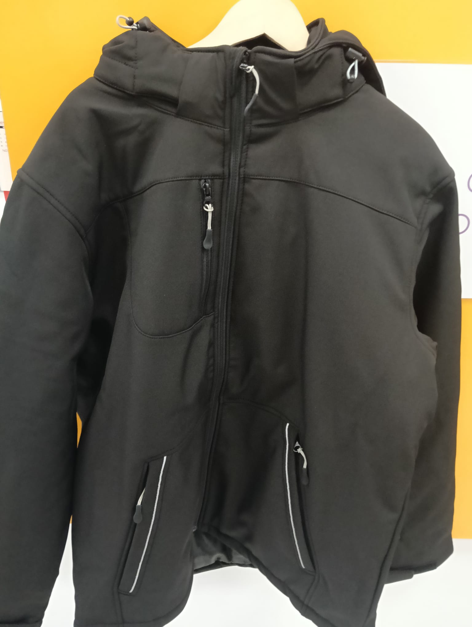 Chaqueta de trabajo Sols modelo Rock Men. Cierre de cremallera frontal. Bolsillos con cremallera. Capucha integrada.