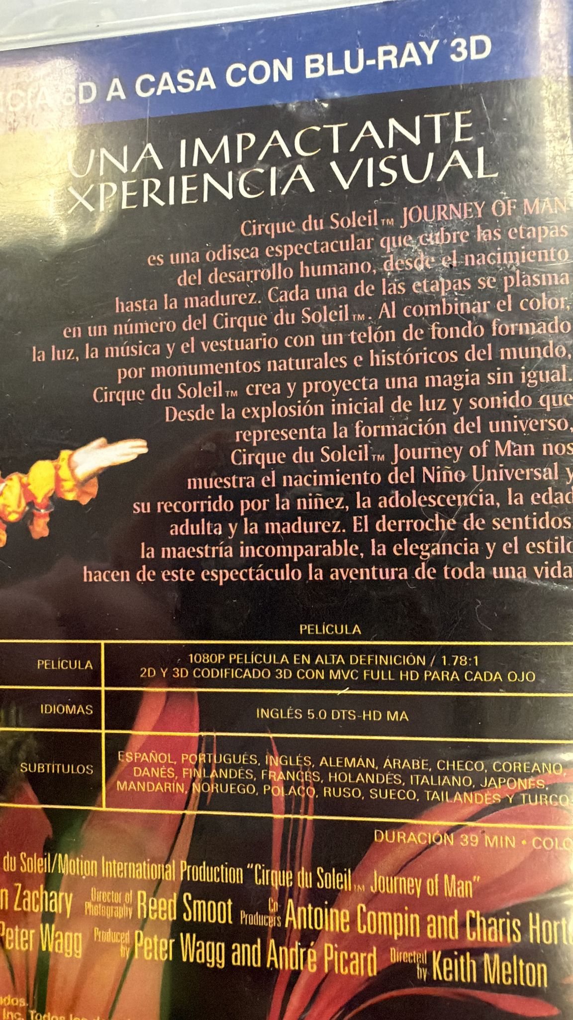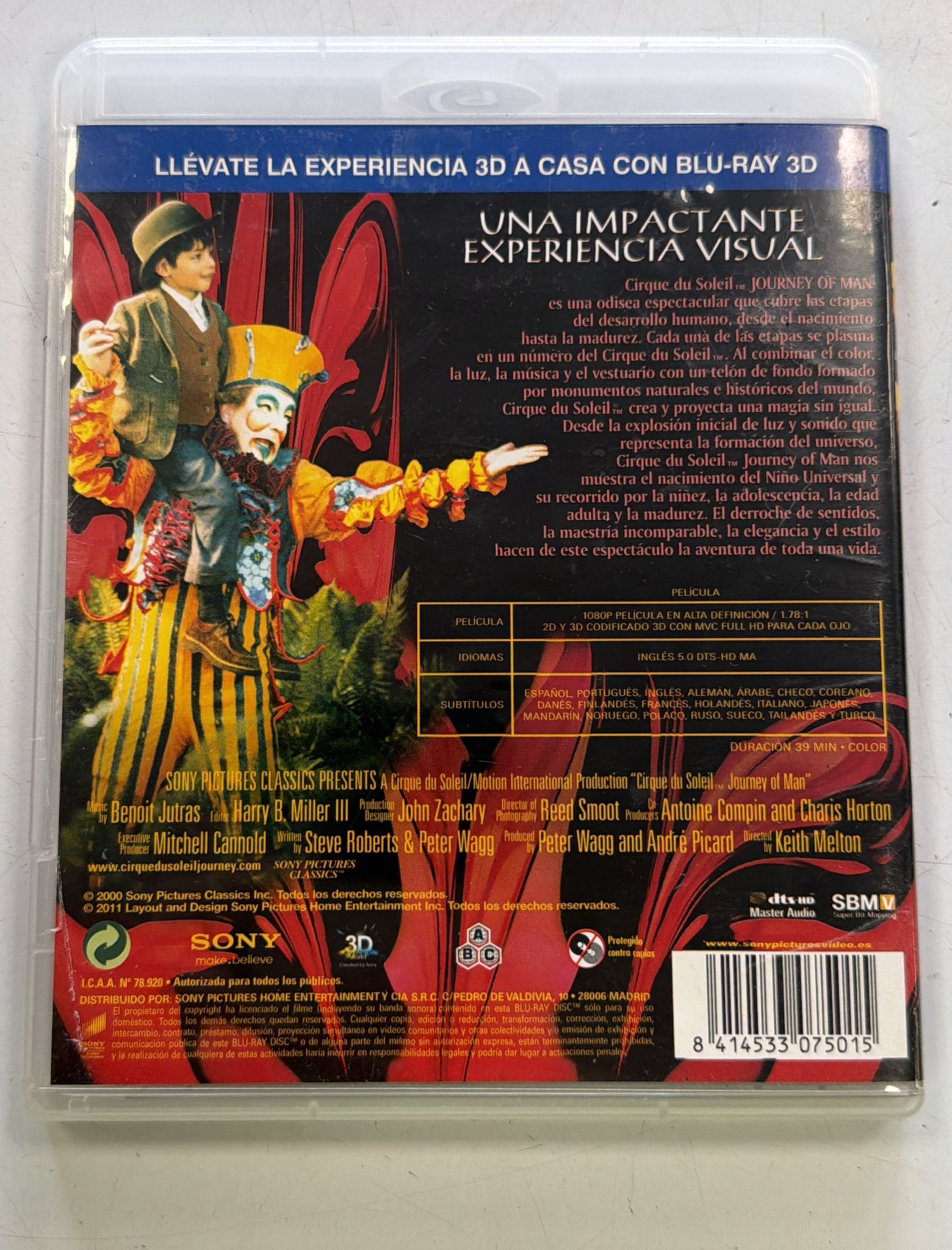 Película Journey of Man del Cirque du Soleil en formato Blu-ray 3D.Alta definición 3D. Audio ingles subtitulos castellano.