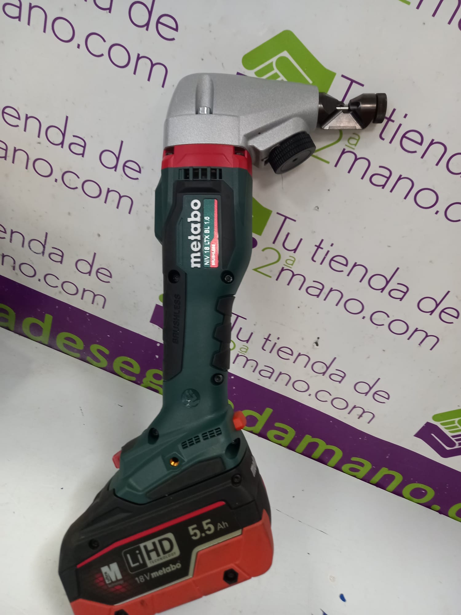 Cizalla Metabo, modelo NIV 18 LTX BL 1.6. Producto sin uso. No añade cargador. Ajuste rápido y sin herramienta de la dirección de corte hasta 360° en pasos de 45°. Velocidad de corte: 1.2 - 2.6 m/min.