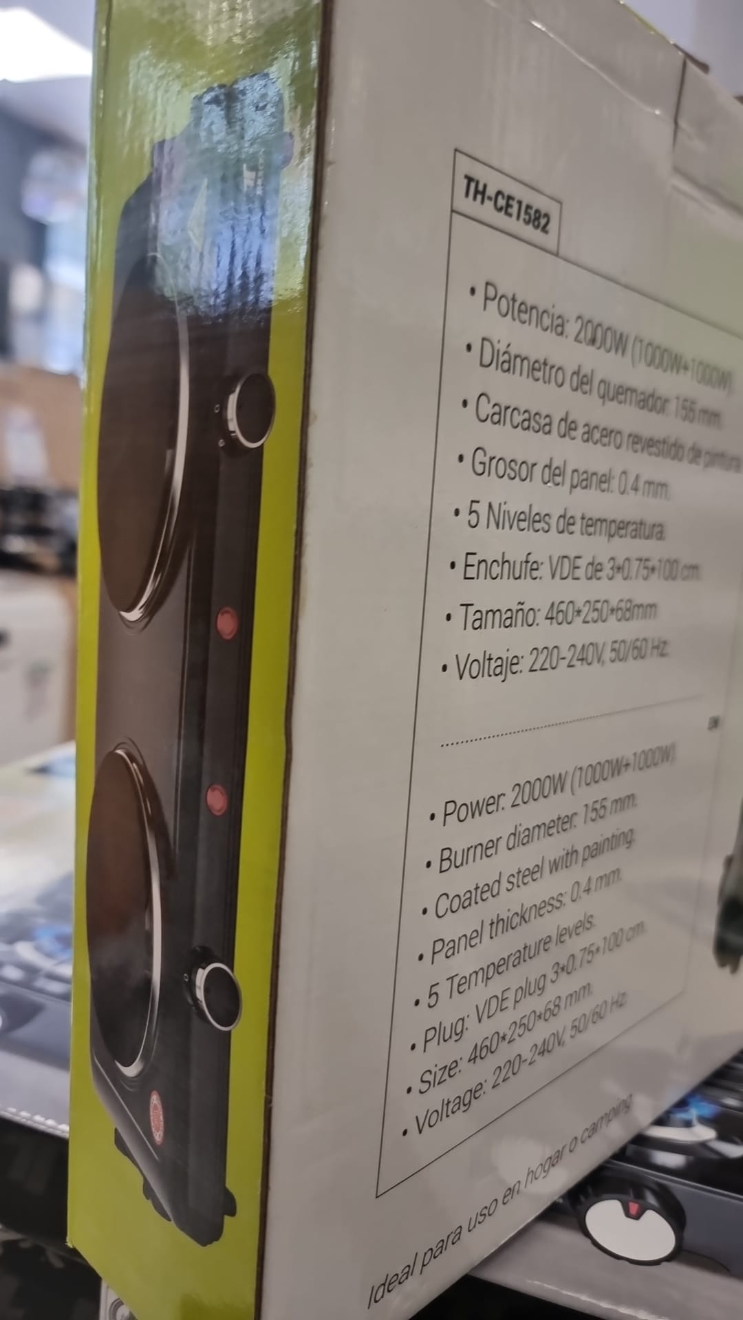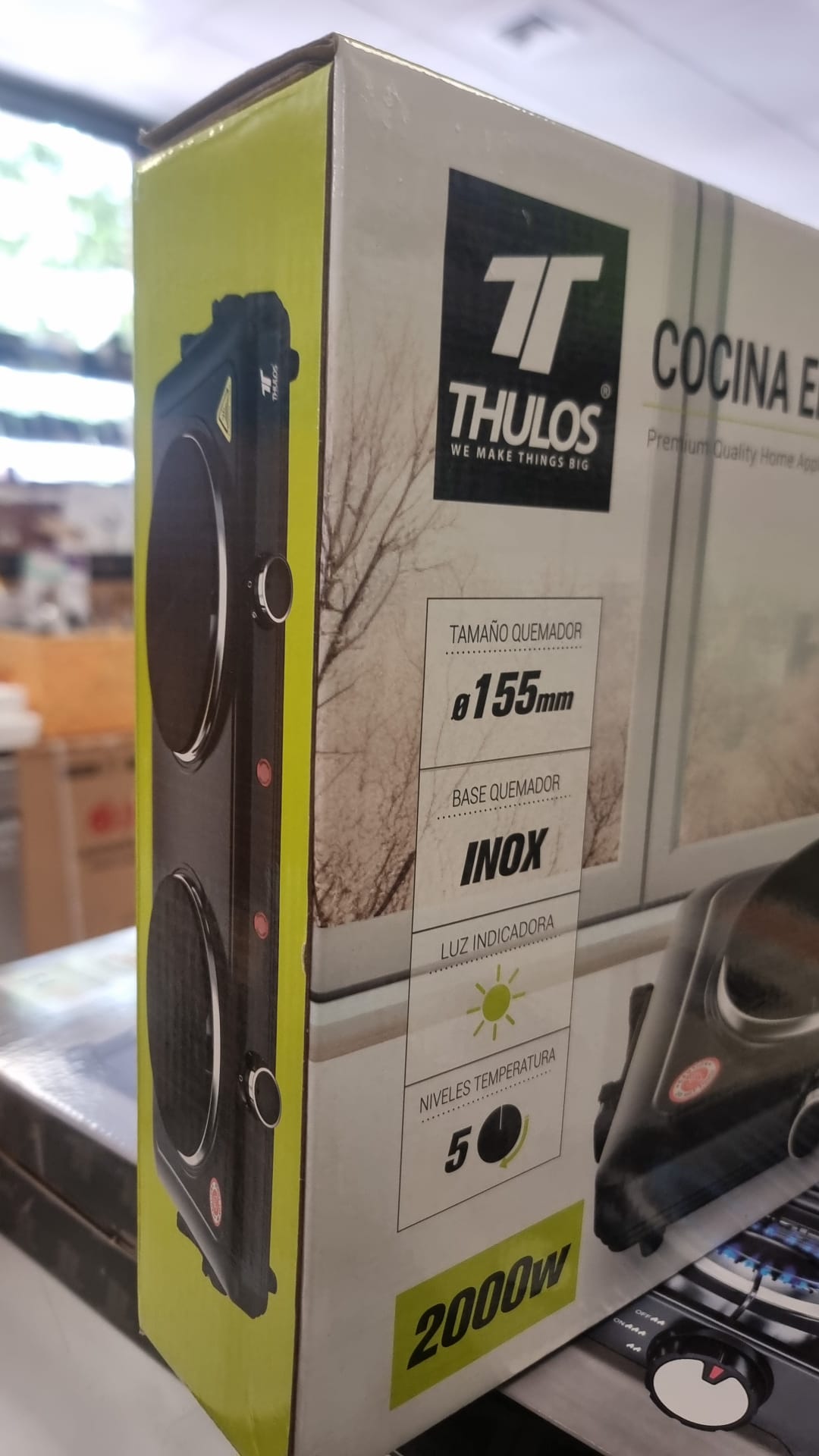 Cocina eléctrica portátil de la marca Thulos, modelo TH-CE1582. Ideal para preparar tus comidas. Dos quemadores de 155 mm.Base de quemador de acero inoxidable (INOX). Indicador luminoso de funcionamiento.