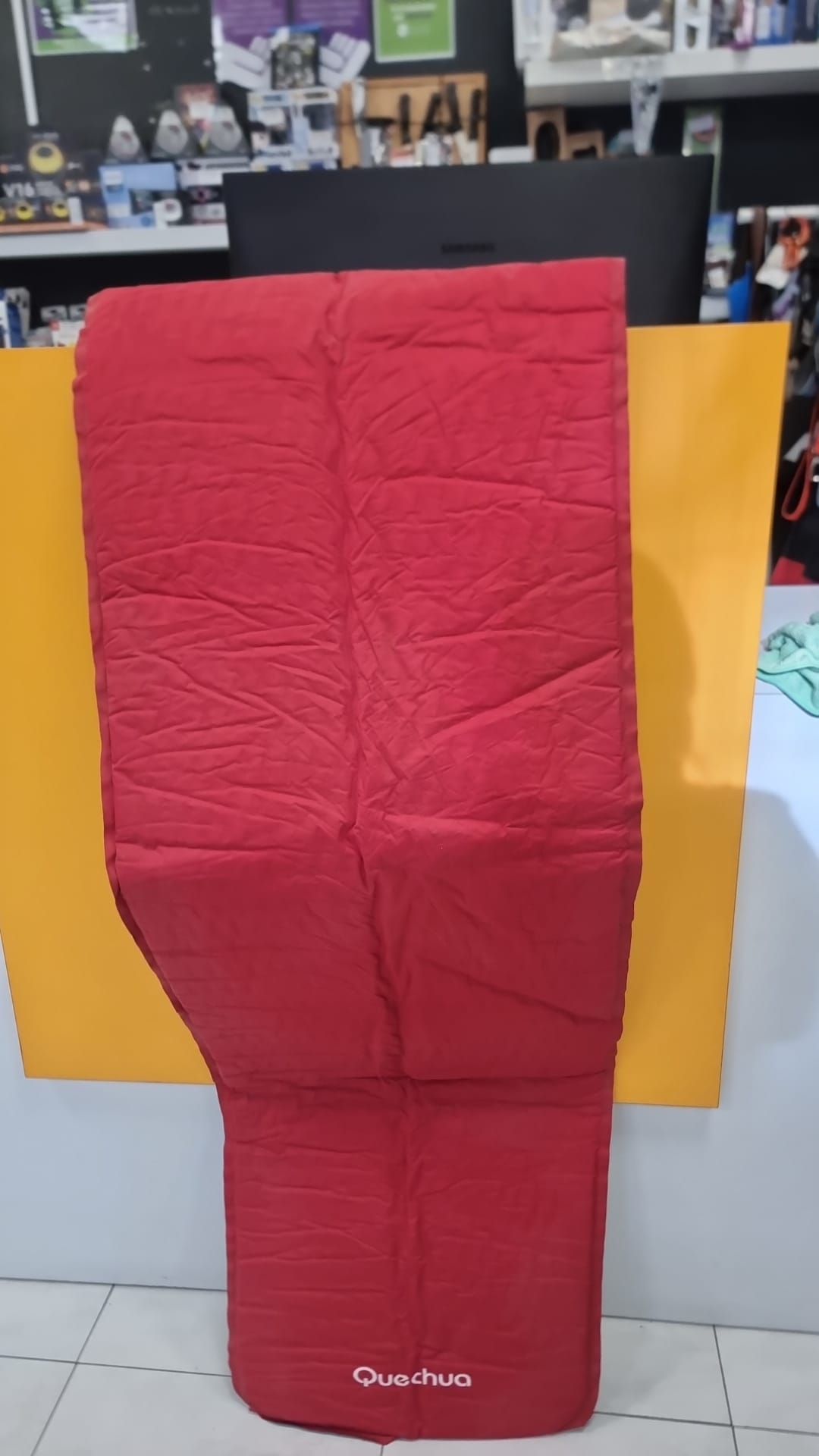 Colchoneta para dormir de la marca Quechua.Color rojo. Medidas aproximadas: 180 cm de largo x 50 cm de ancho.