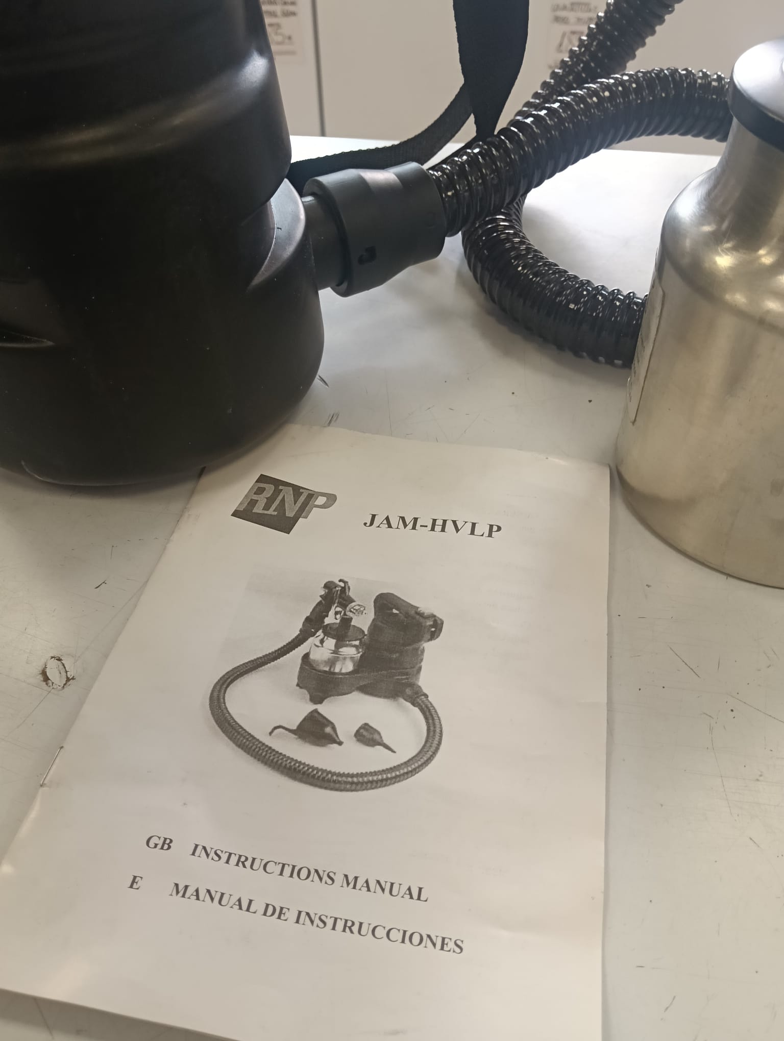 Conjunto de pistola de pintura airless con compresor.Modelo: JAM-HVLP. Incluye pistola, compresor y accesorios. Manual de instrucciones.