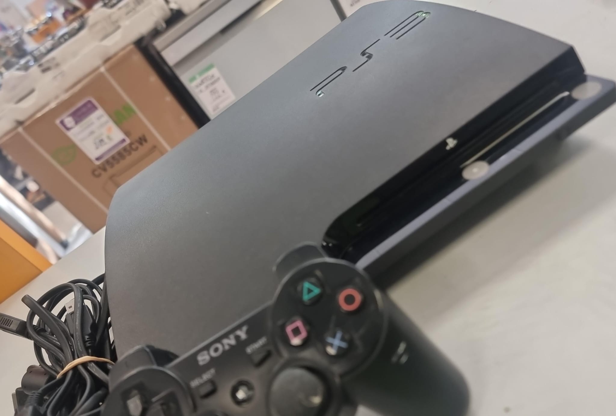 PlayStation 3 Slim en buen estado, con 120 GB de almacenamiento.