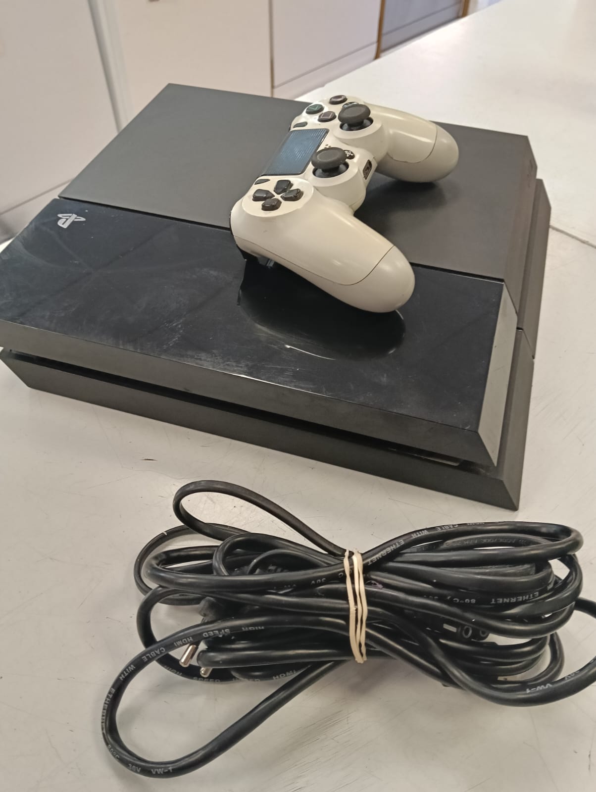 Consola PlayStation 4 modelo Fat con disco duro de 500GB. Incluye un mando inalámbrico origina Sony. Capacidad de 500GB. Mando de color blanco.