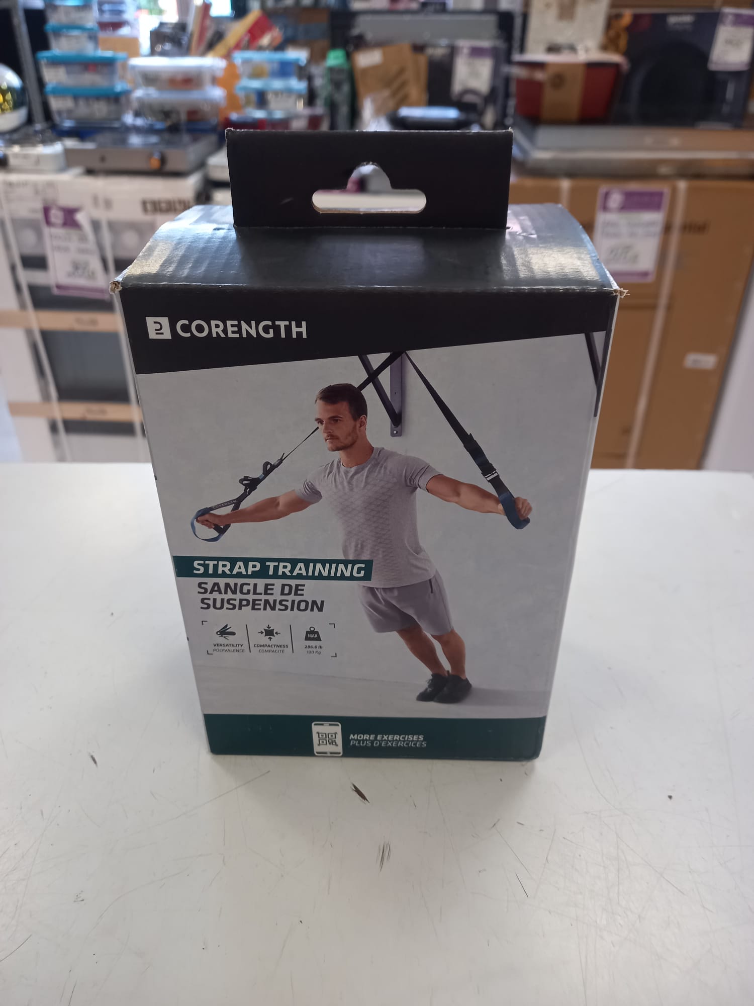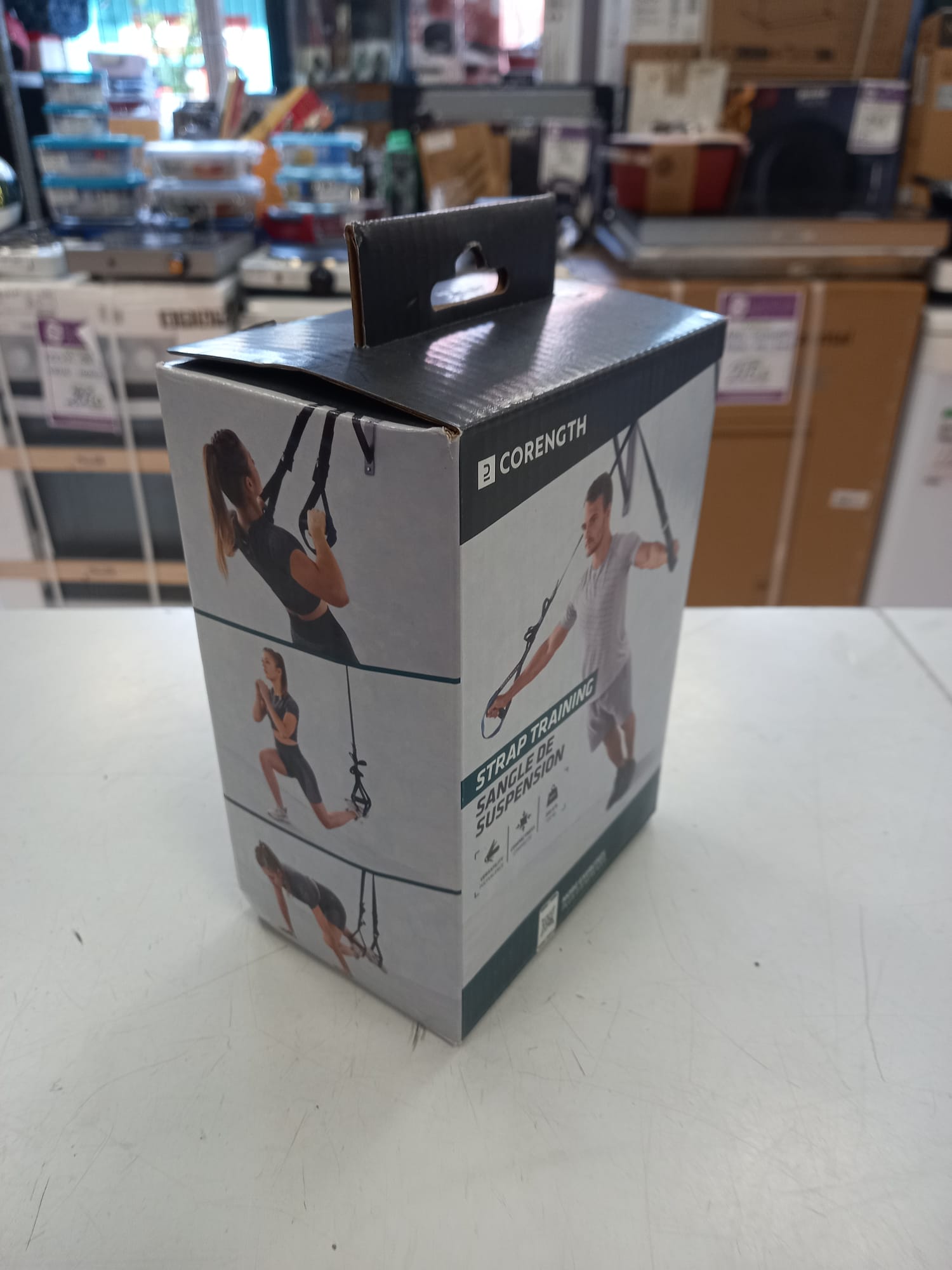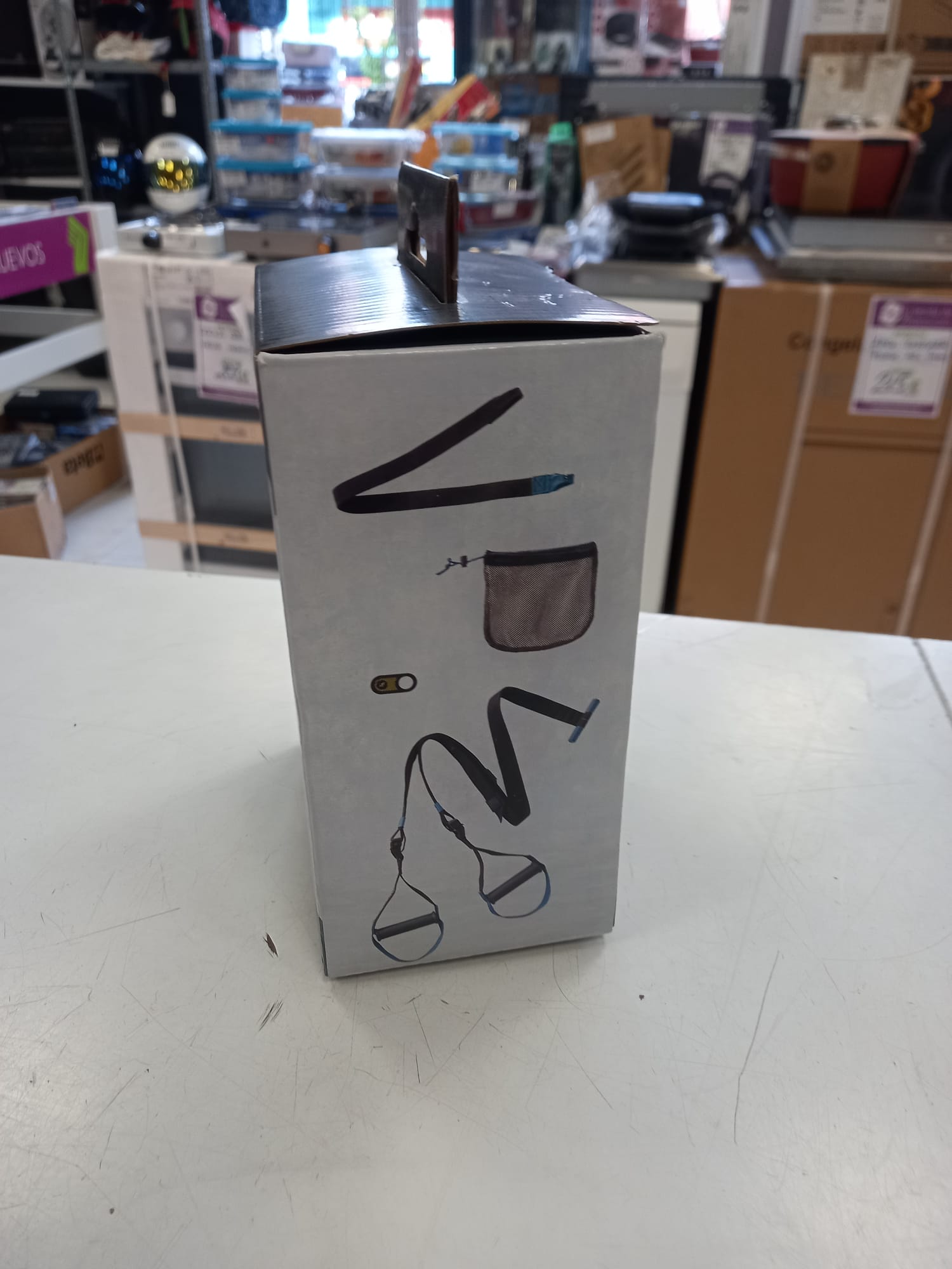 Correas Suspensión Negro Azul. Con estas correas de suspensión fáciles de ajustar y de llevar a cualquier parte, gracias a su funda, podrás entrenar en vacaciones o en viajes. Solo necesitas una puerta.