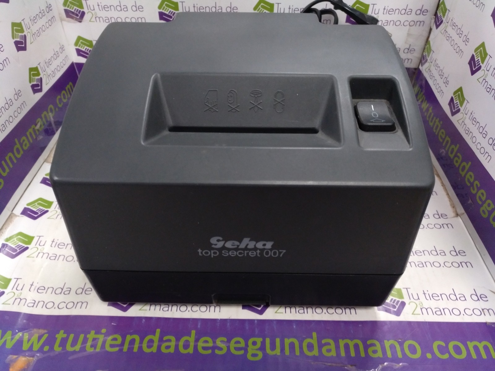 Destructora de tickets marca Geha modelo Top Secret 007. Botón On / Off. Viene con cable de alimentación.