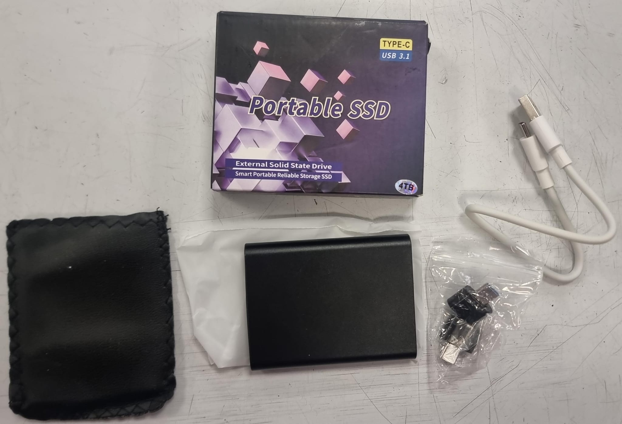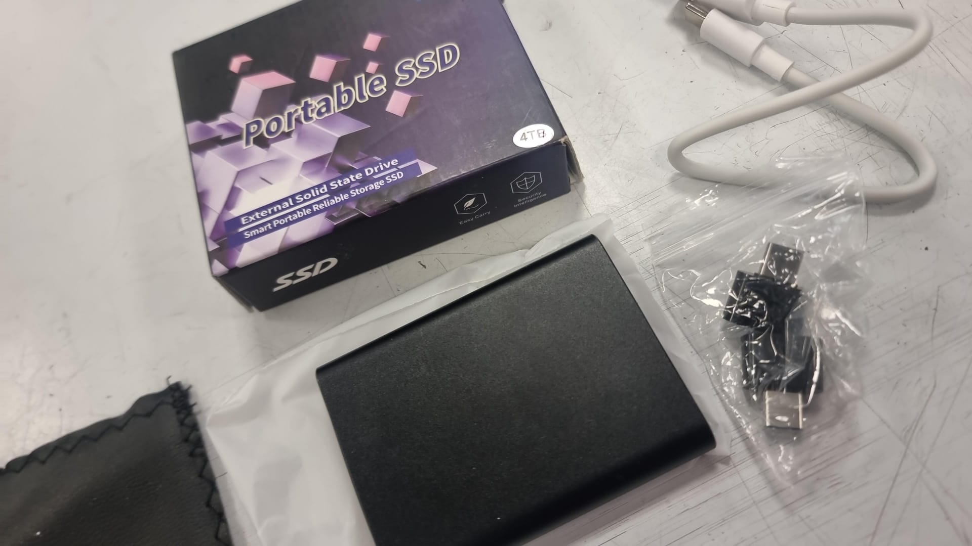 Disco duro externo SSD portátil de 4TB. Incluye cable USB 3.1 Type-C Capacidad: 4T. Tipo: SSD Externo. Conexión: USB 3.1 Type-C. Incluye funda protectora.