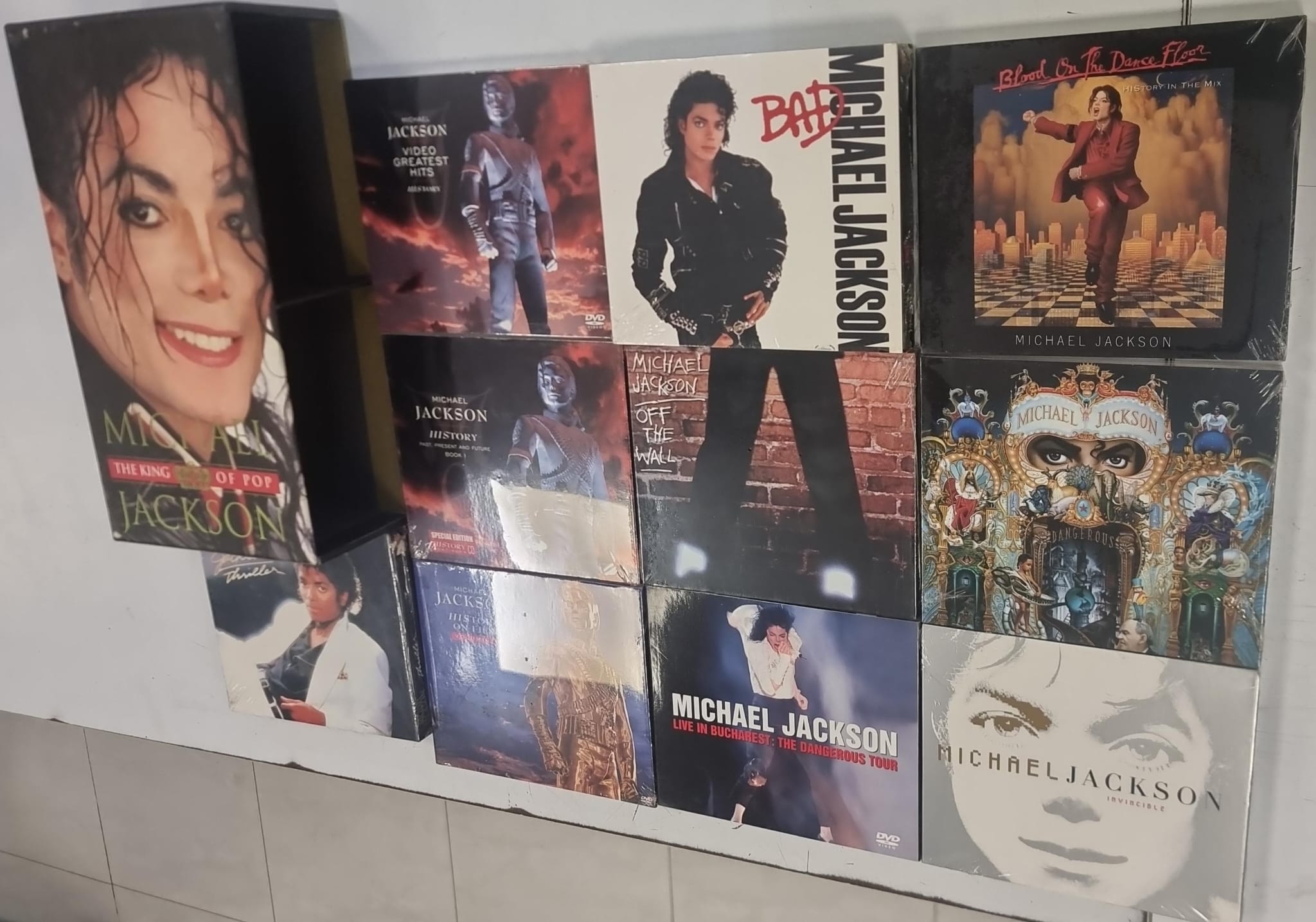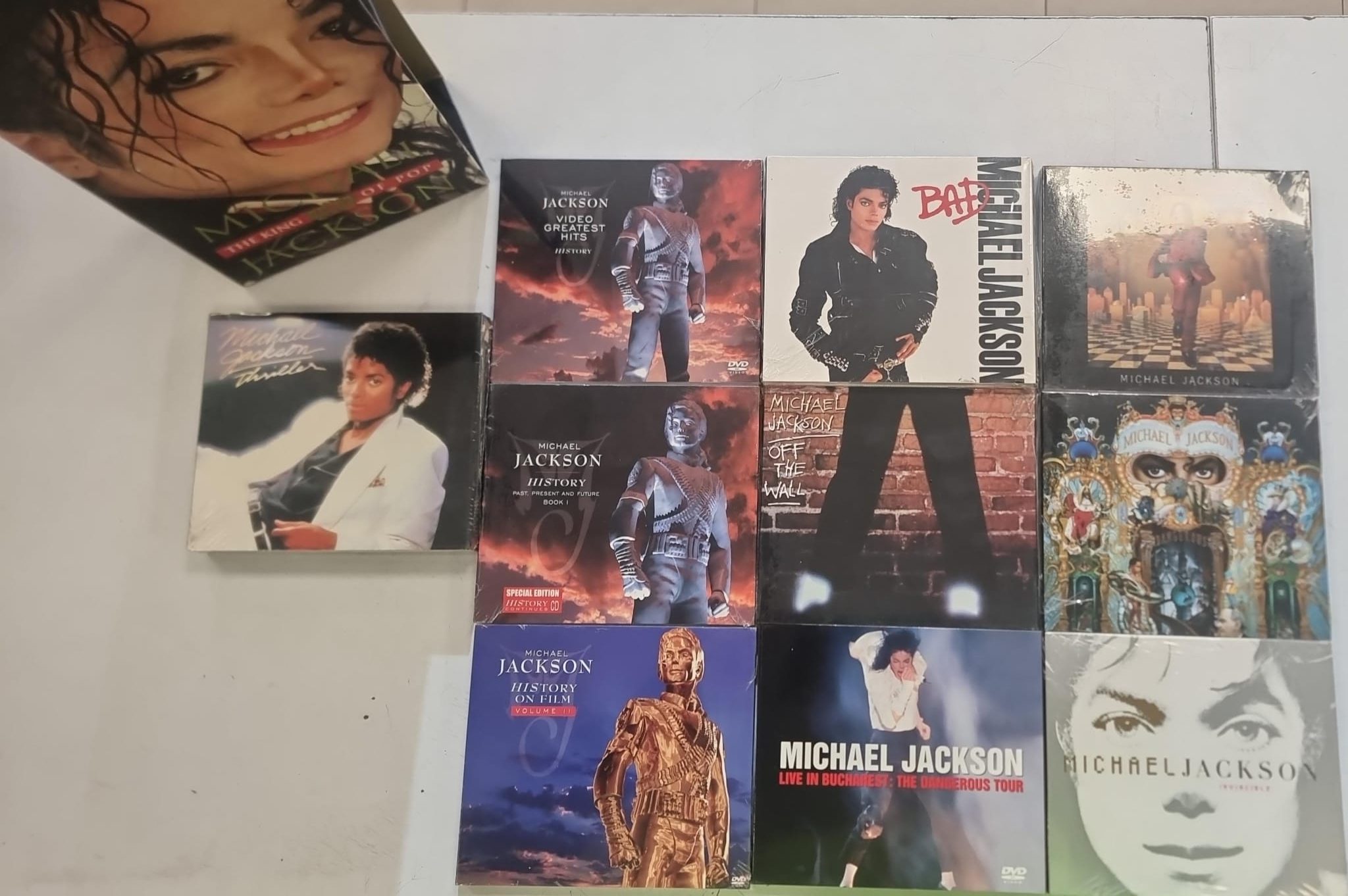 Colección de 10 discos de Michael Jackson, The King of Pop. Incluye éxitos del artista. Formato de disco compacto (CD).