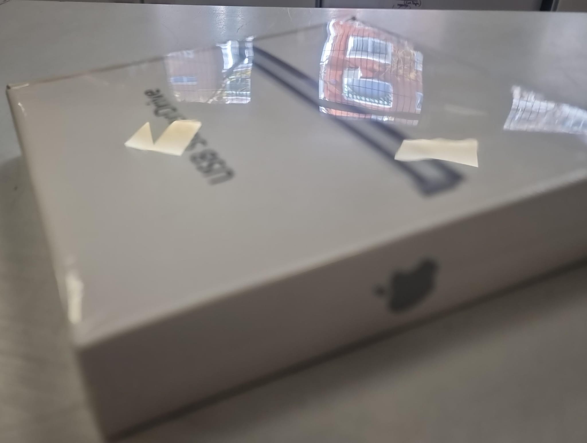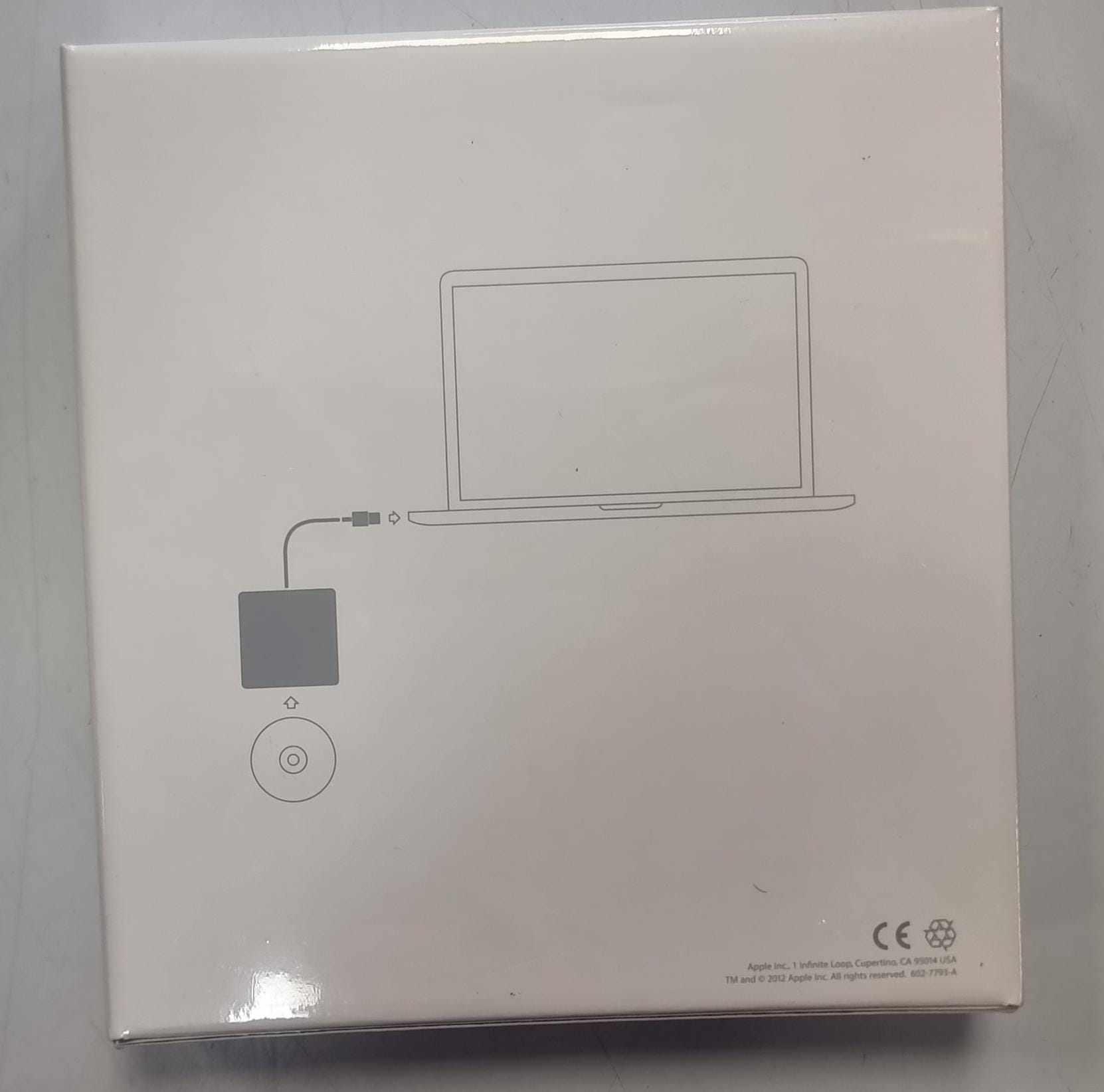 Adaptador de corriente USB de Apple.Modelo A1379. Diseño compacto y blanco.