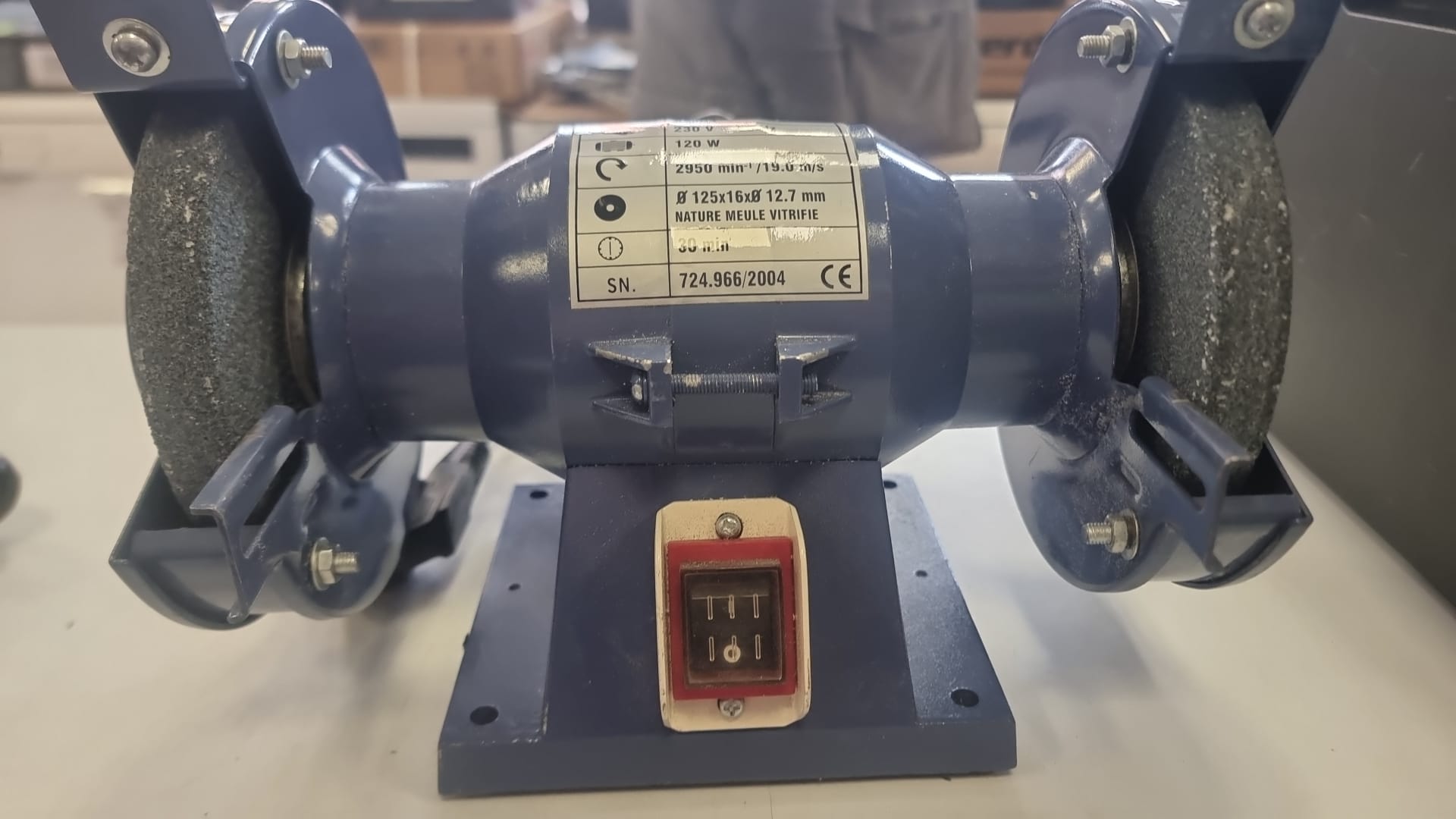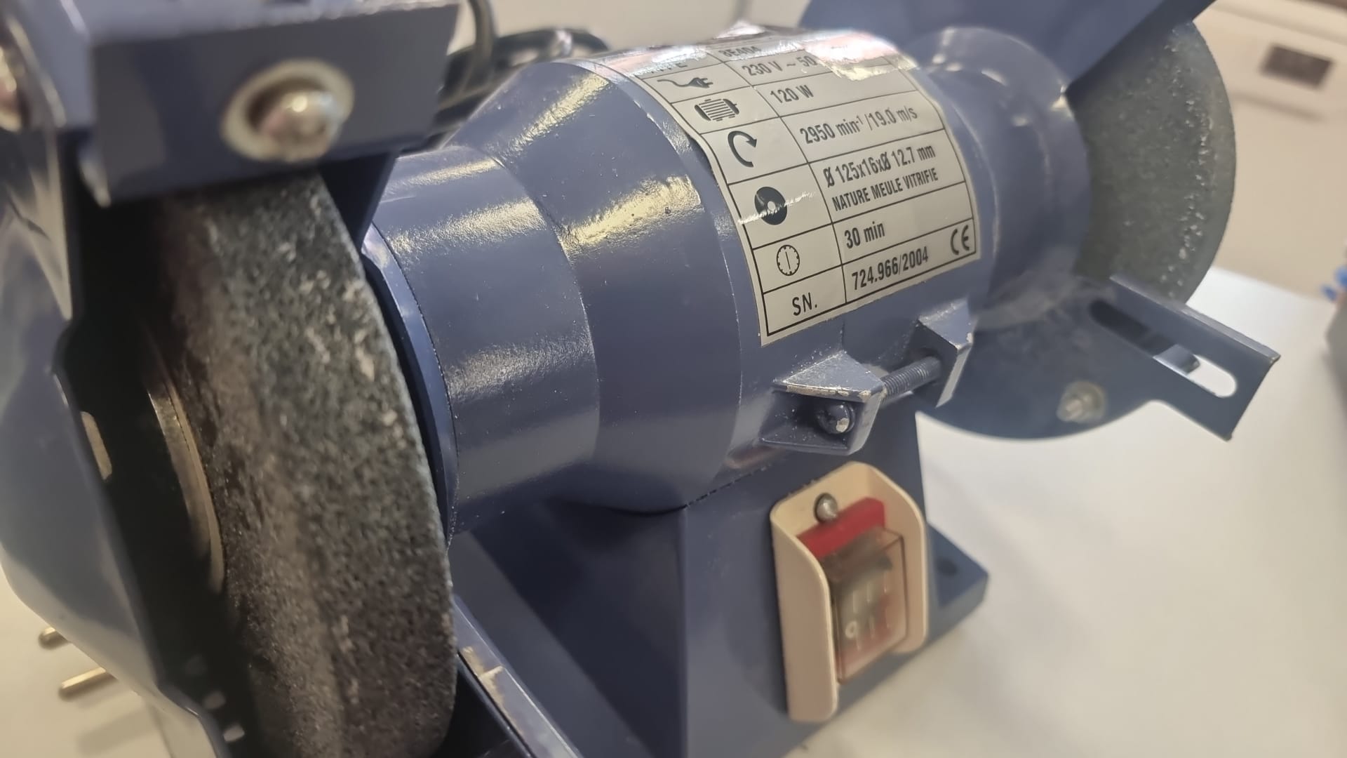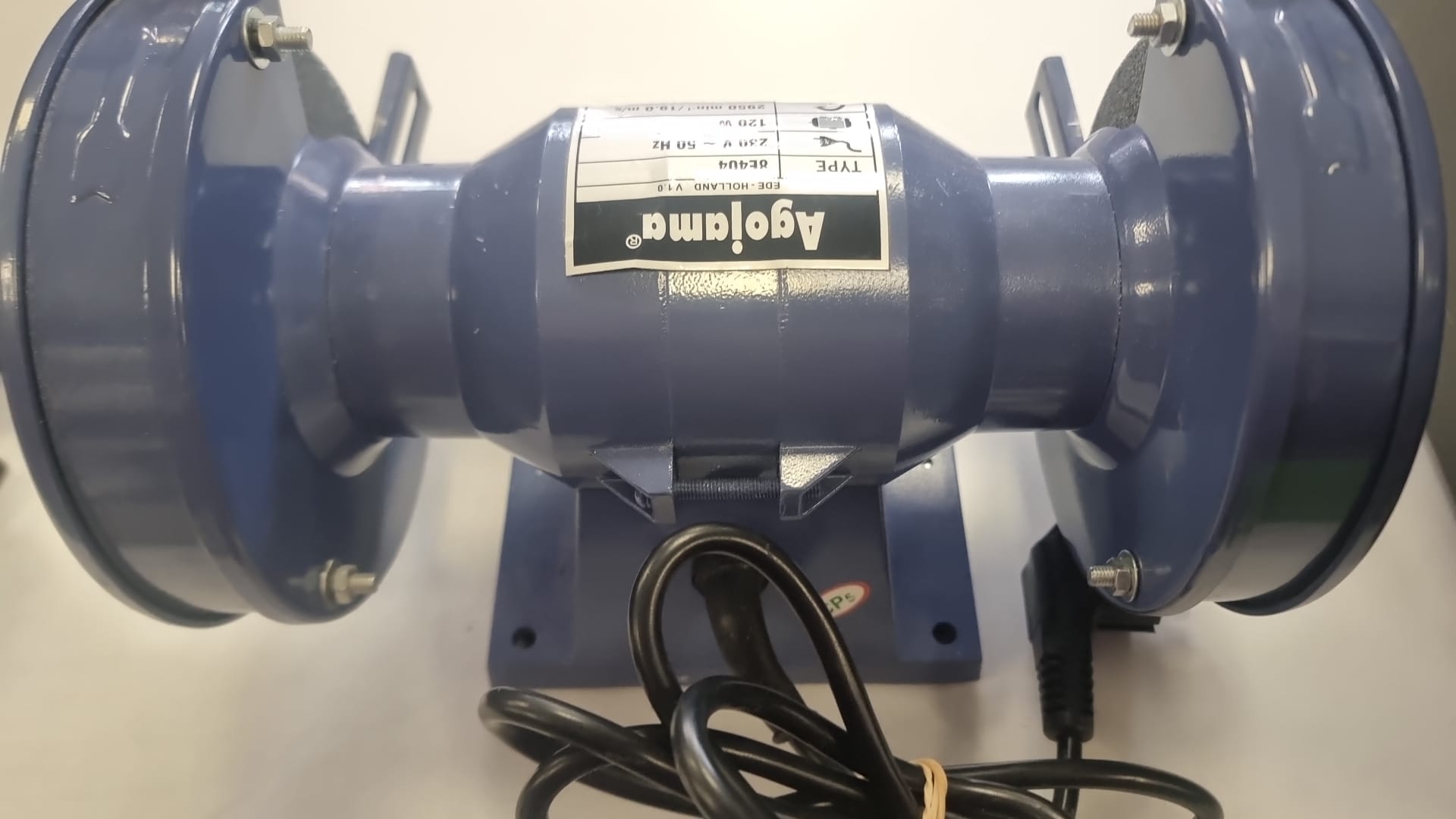 Esmeriladora de banco Agojama con motor de 120W Diámetro de disco: 125 mm. Grosor de disco: 16 mm. Diámetro interior: 8 mm.Velocidad: 2950 rpm.