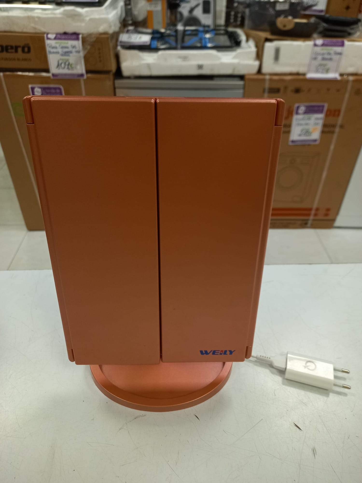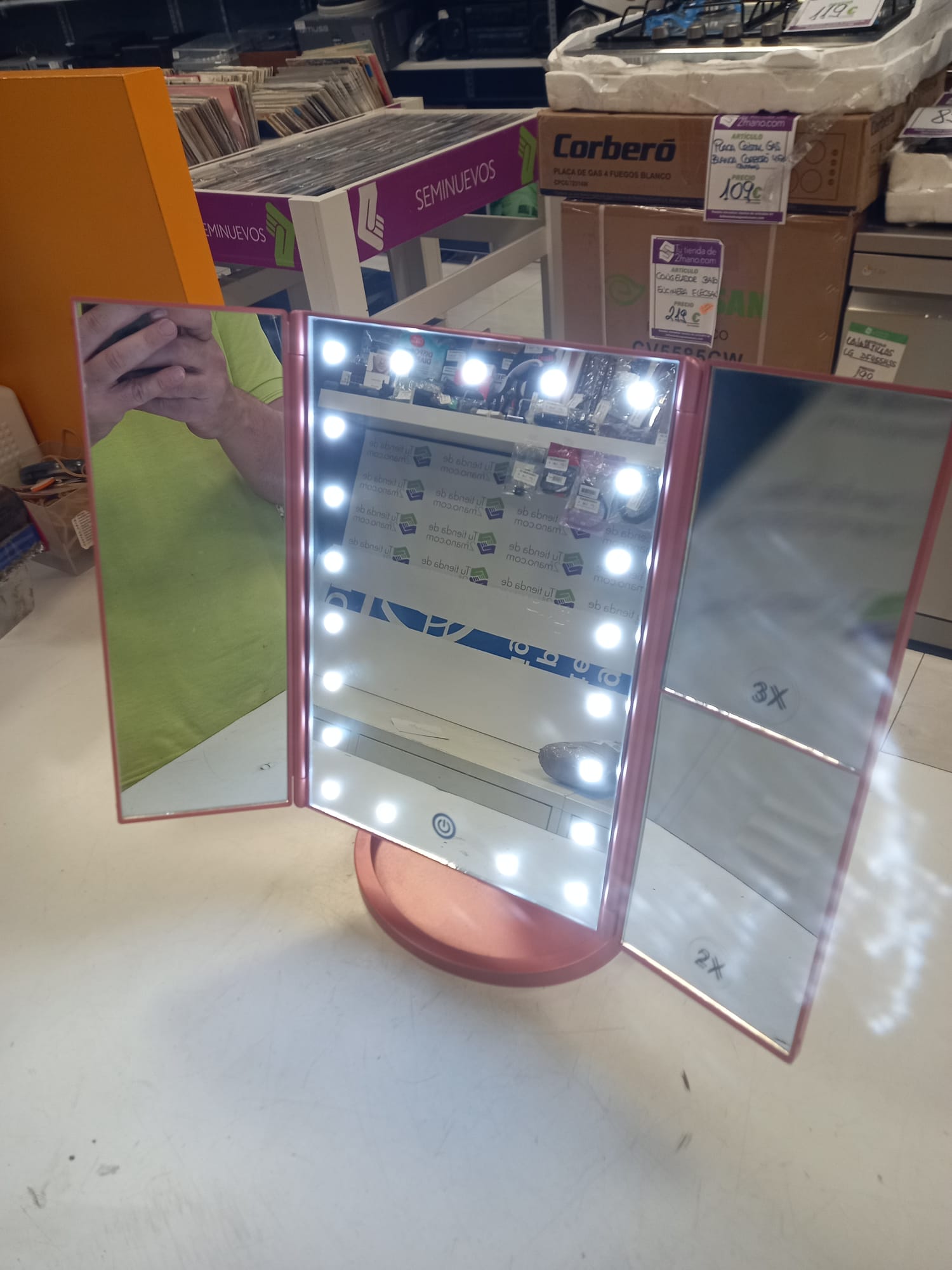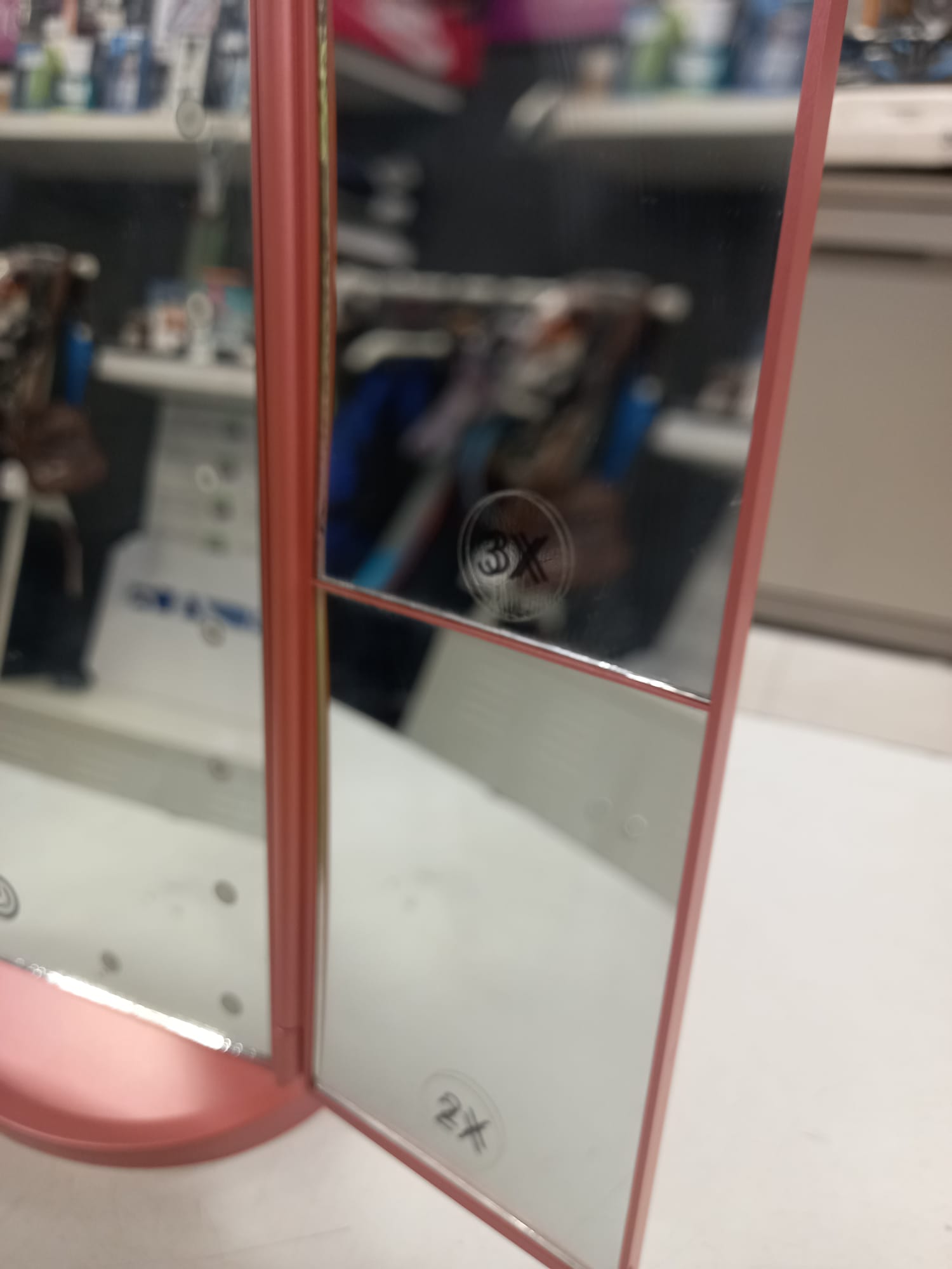 WEILY Espejo de Maquillaje, 1x / 2X / 3X Espejo de Maquillaje de Tres Pliegues con 21 Luces LED y Pantalla táctil Ajustable Espejo Iluminado Espejos cosméticos de encimera (Rosado).