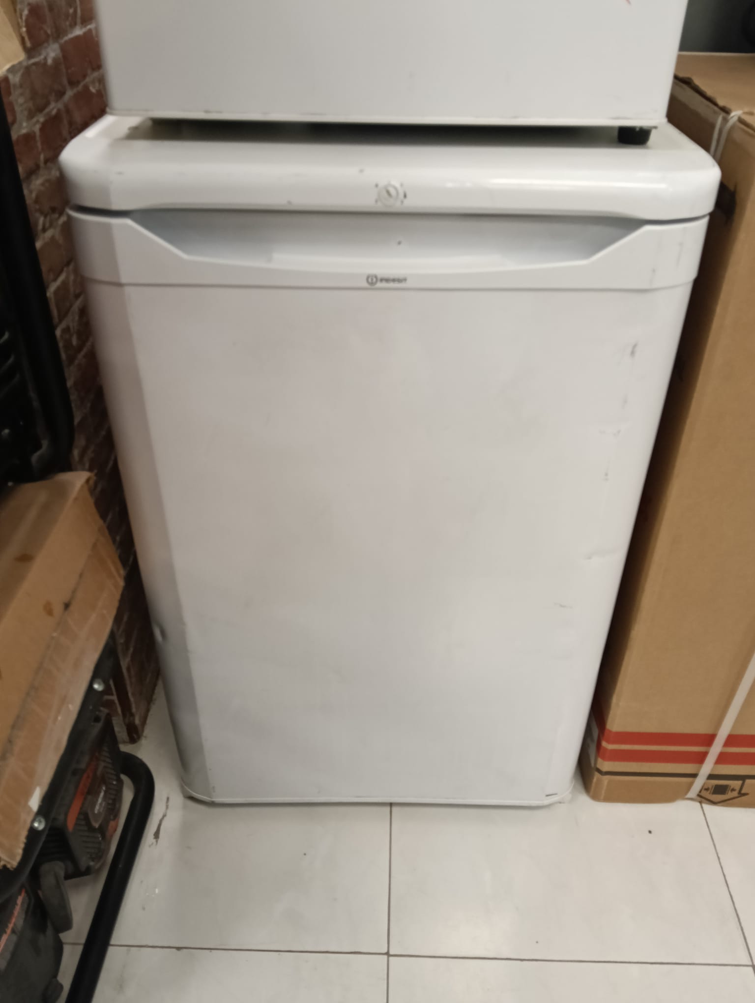 Frigorífico compacto de la marca Indesit, modelo MF11.Color blanco. Diseño bajo encimera.