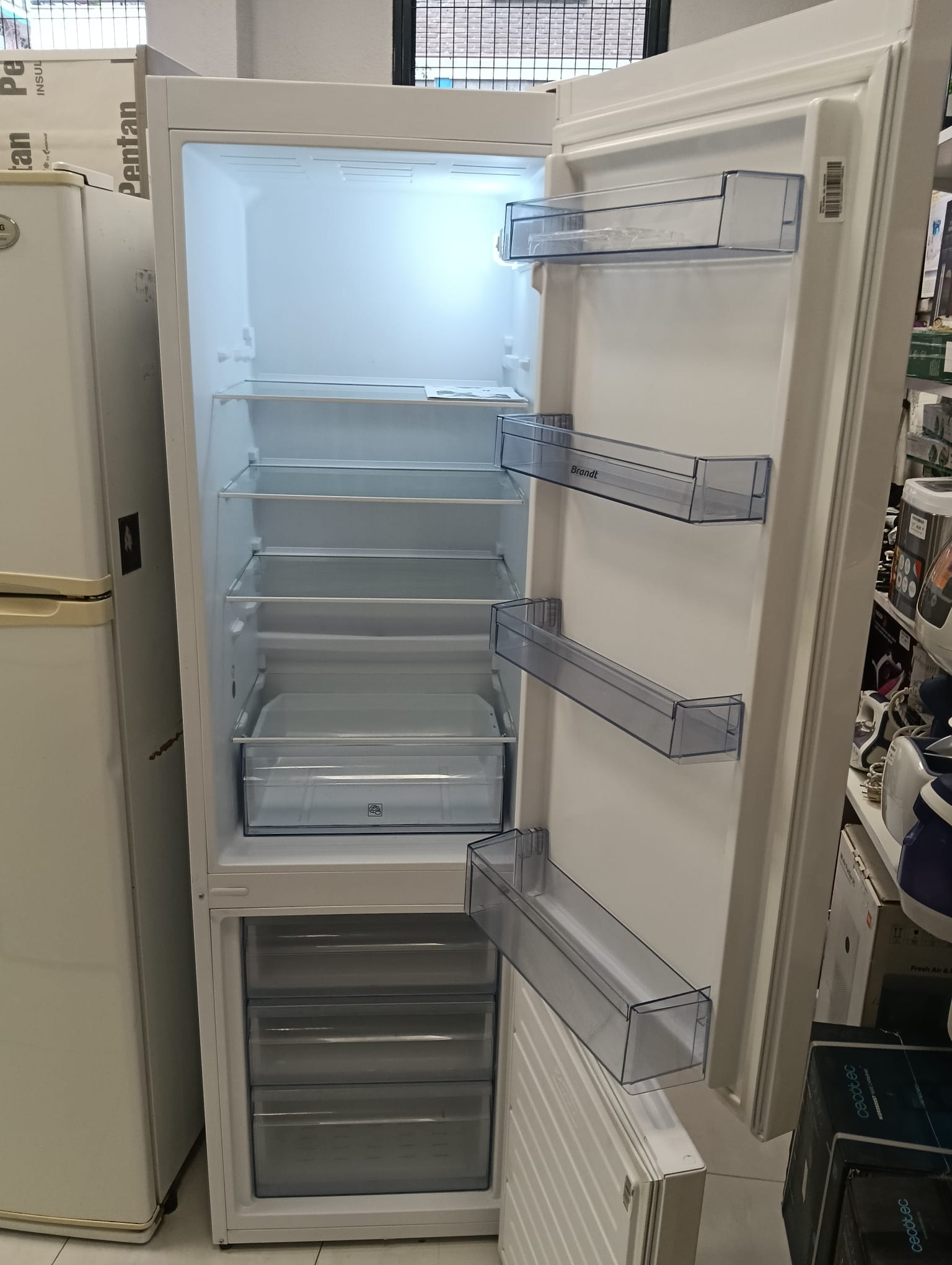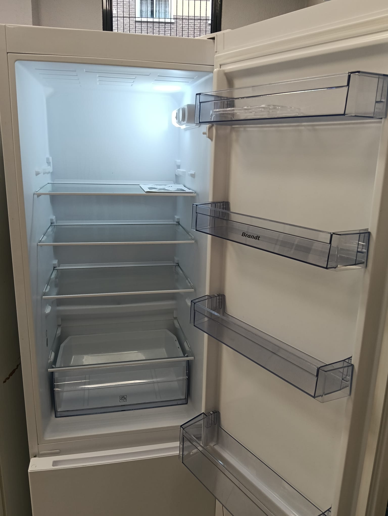 Frigorífico combi de la marca Brandt en color blanco.Capacidad total de 287 litros. Medidas: 180 cm de alto x 55 cm de ancho.
