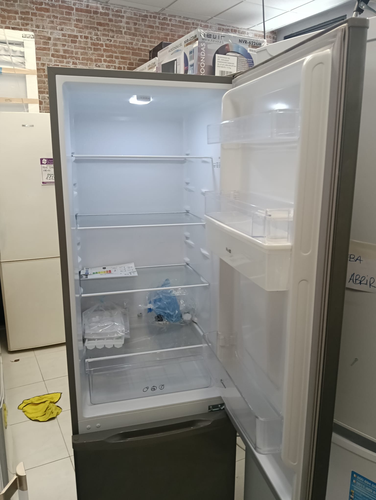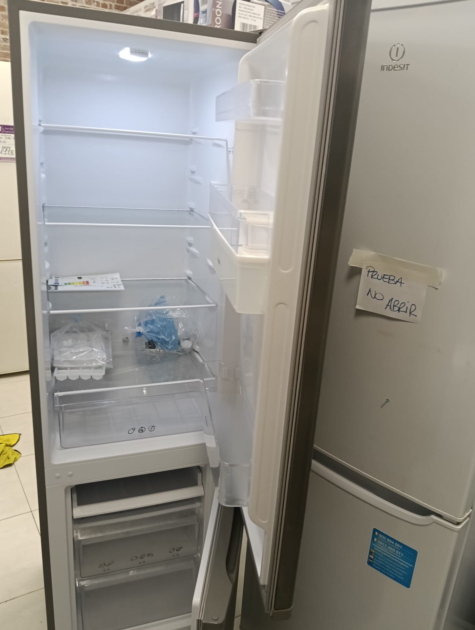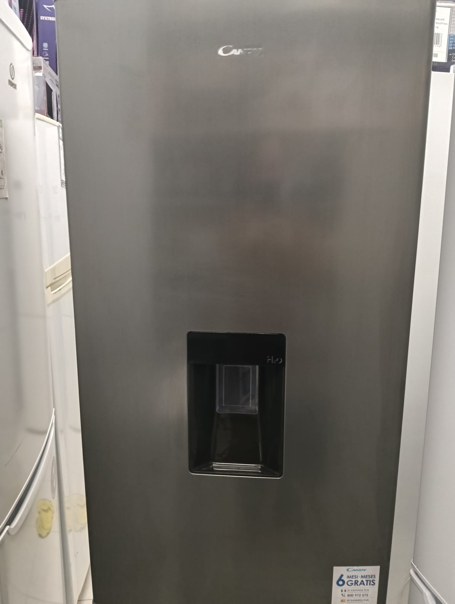 Frigorífico combi Candy de acero inoxidable.Modelo CHICS 5182XWDN. Medidas: 180 x 55 cm. Dispensador de agua integrado.