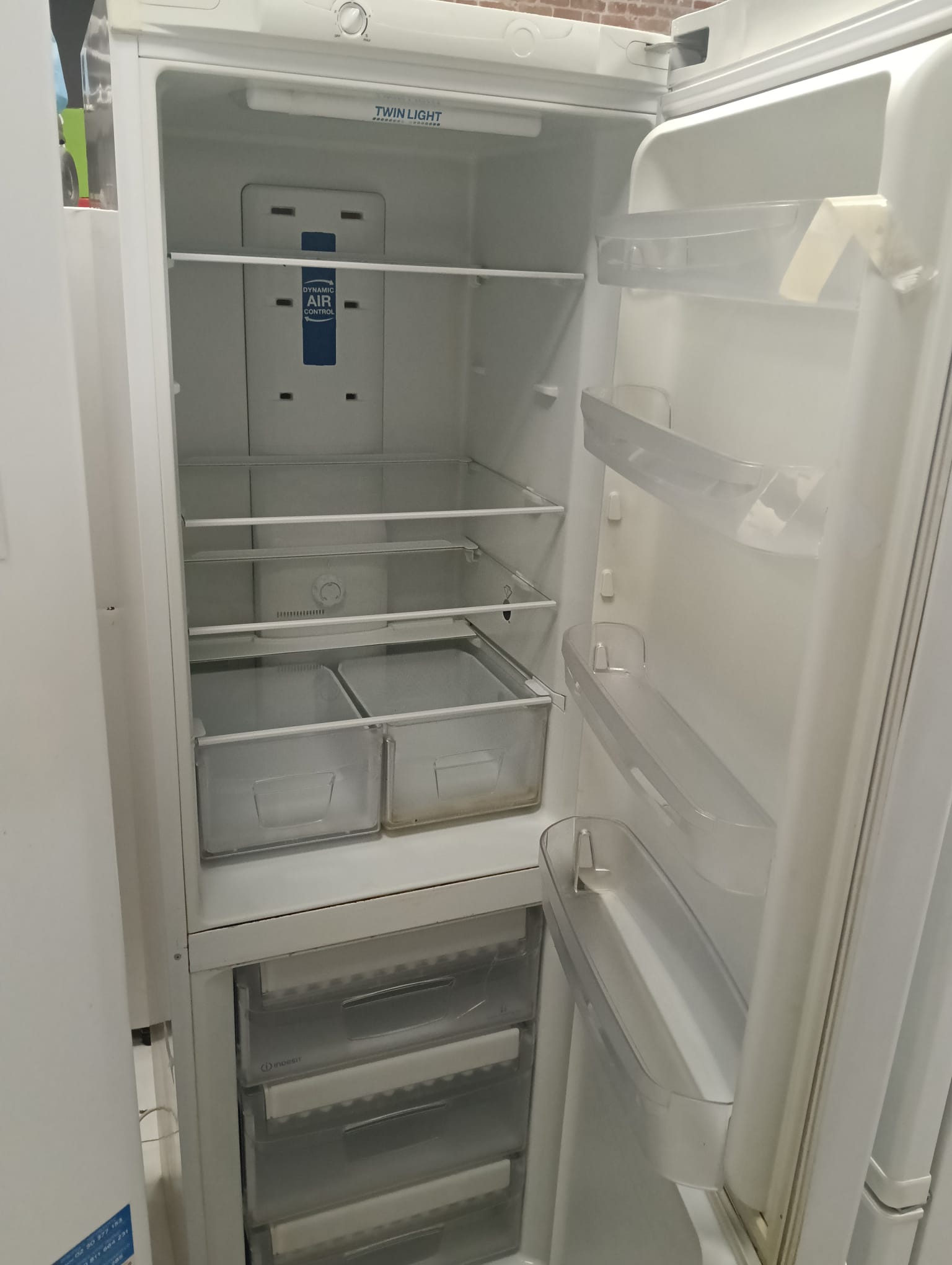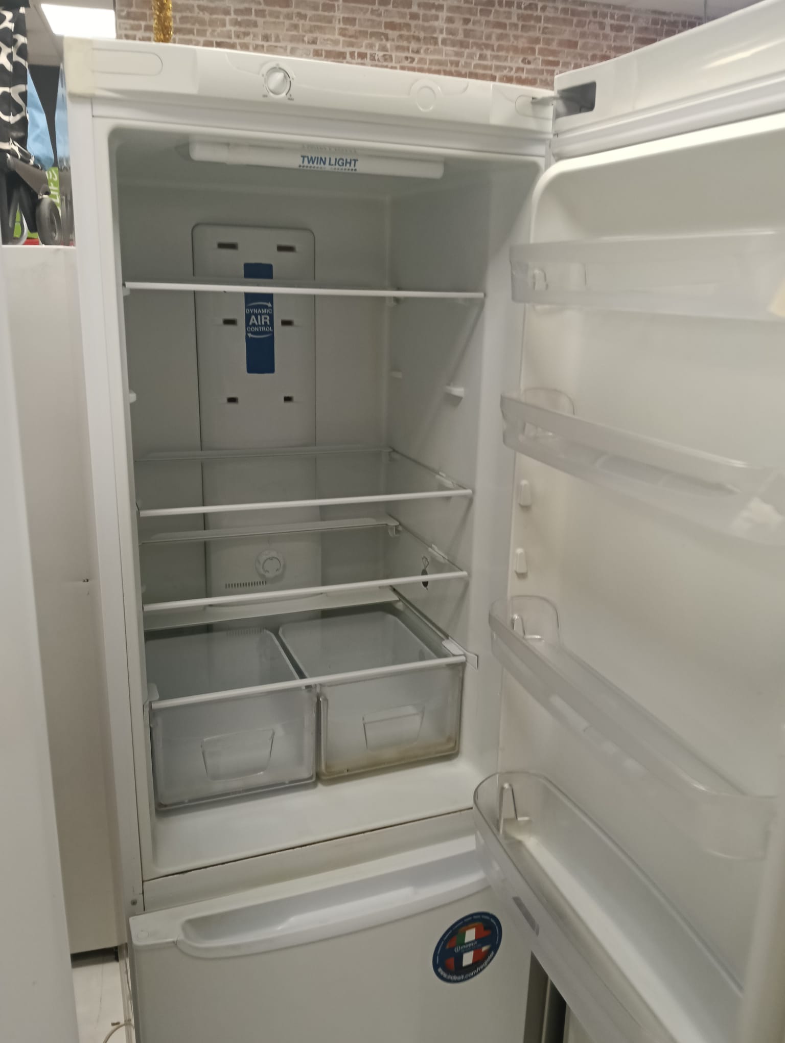 Frigorífico combi de la marca Indesit en color blanco. Medidas: 185 cm de alto x 60 cm de ancho.Diseño moderno y funcional.
