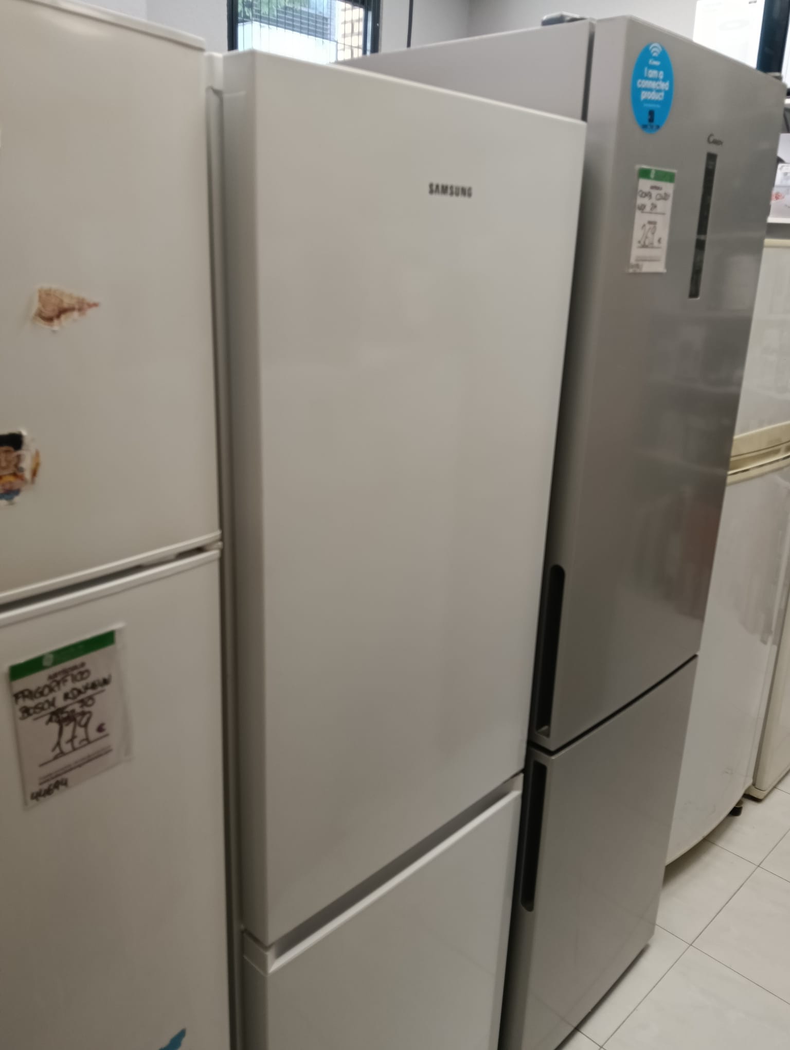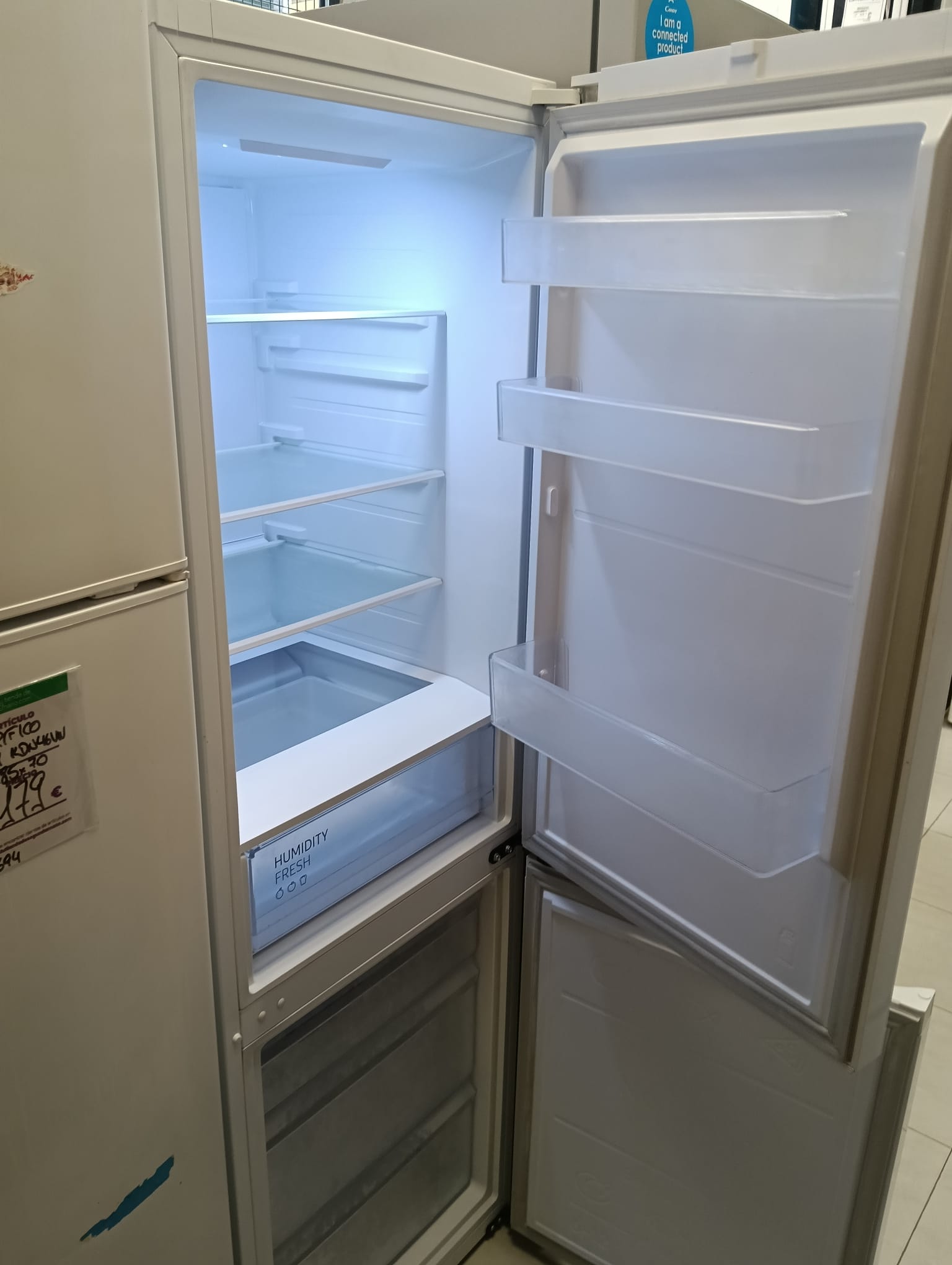 Frigorífico combi de la marca Samsung, modelo RB34T600. Color blanco. Diseño moderno y elegante. Amplia capacidad de almacenamiento. Medida 185 alto x 60cm ancho.