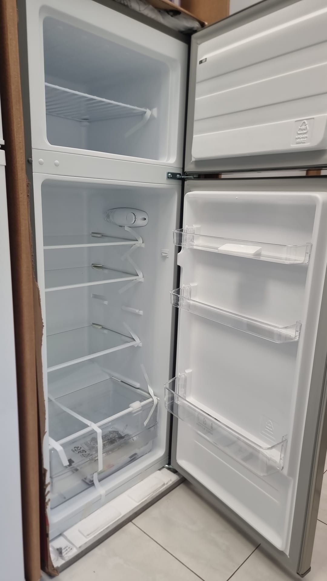 Frigorifico JOHNSON 2P . Medidas. 143X55X55CM. Color INOX Cíclico. Control mecánico. Iluminación interior LED. Marca estetica en la puerta congelador.