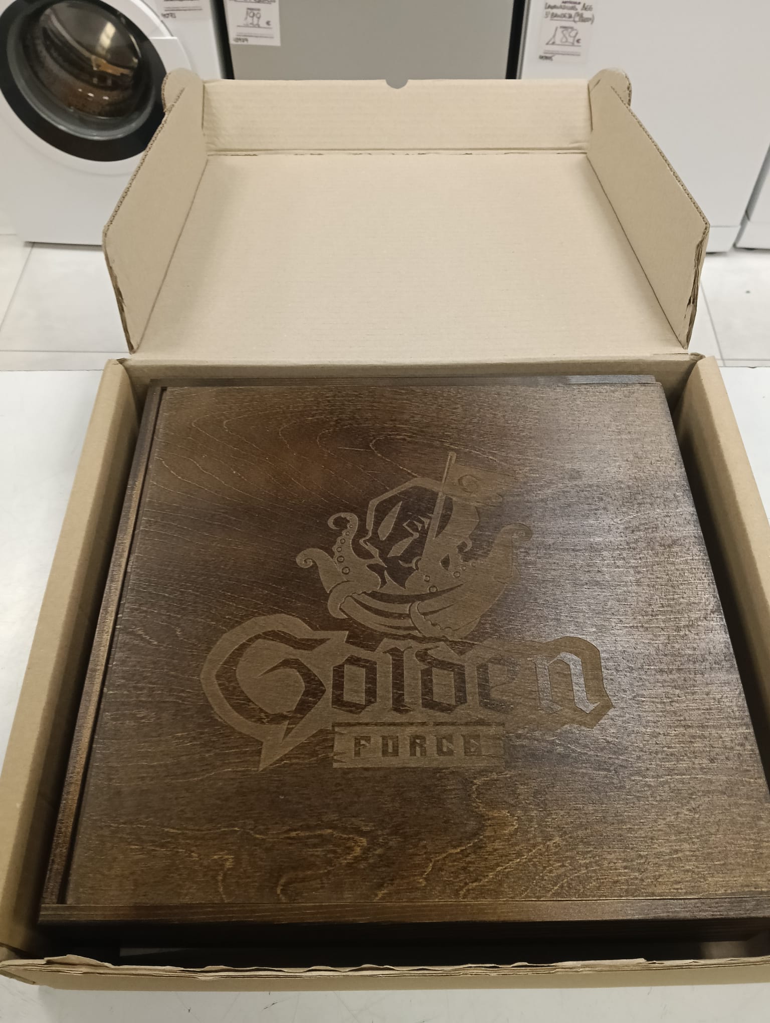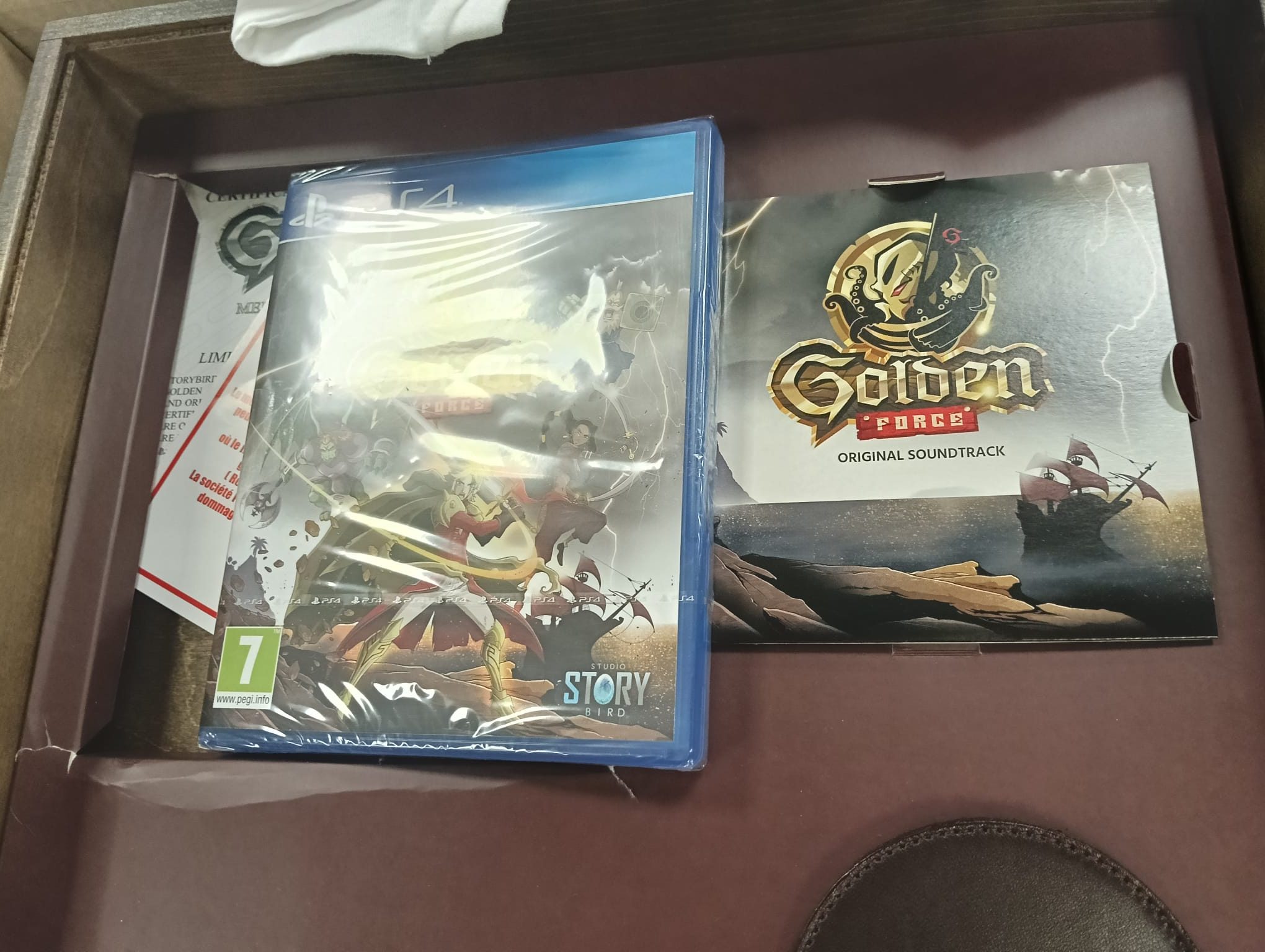 Edición coleccionista del juego Golden Force para PS4. Caja de madera con grabado. Incluye juego de acción.