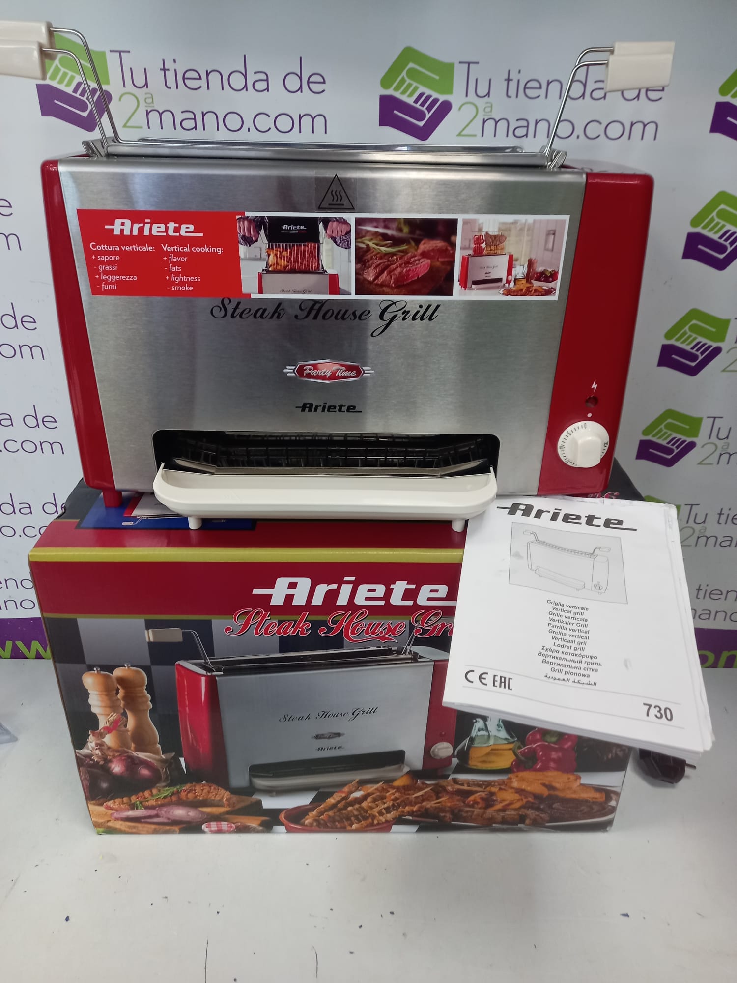 Grill - Ariete Steak House Grill 730 Vertical, Potencia 1300W, Doble resistencia, Inox, Rojo.