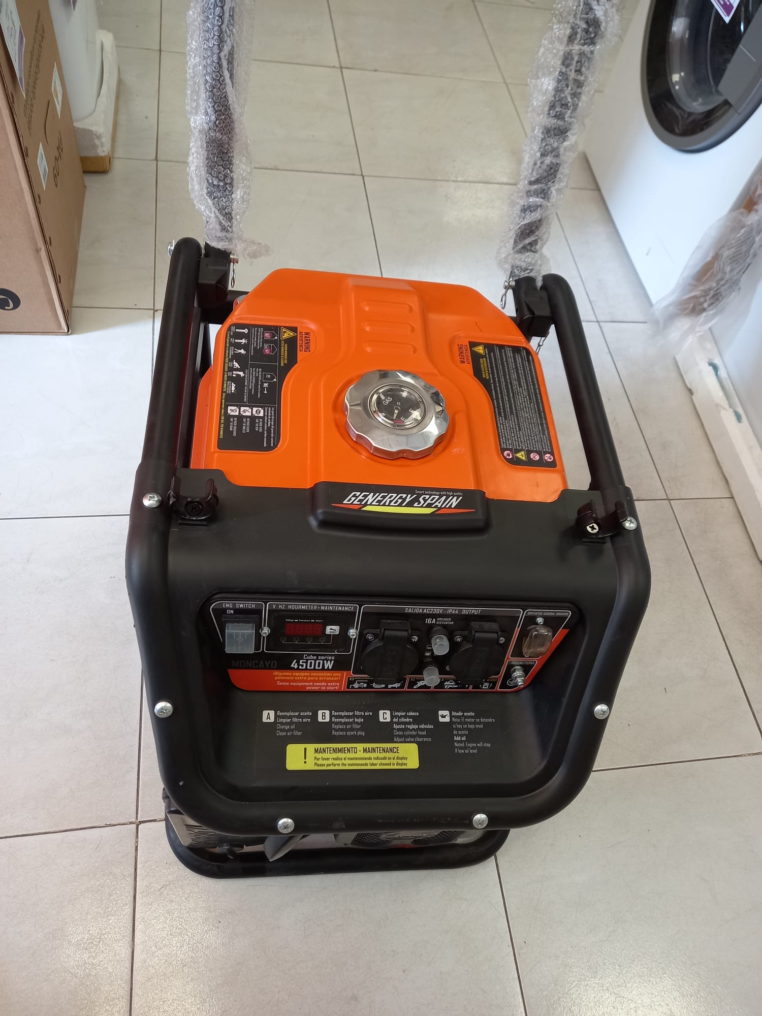 Grupo electrógeno, modelo Genergy Spain Moncayo. Sin uso (muy buen estado). No añade ruedas. Potencia de 4500W. 230V y 272CC. AC 230V Nominal: 4000W. Peso 55kg. 2 tomas de enchufe.