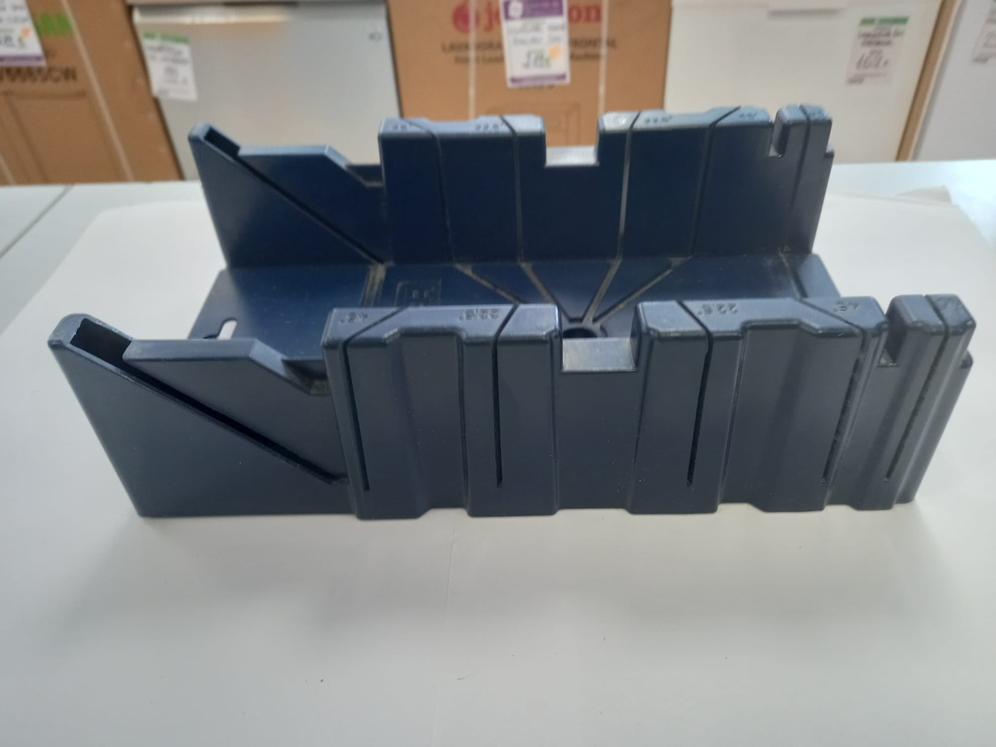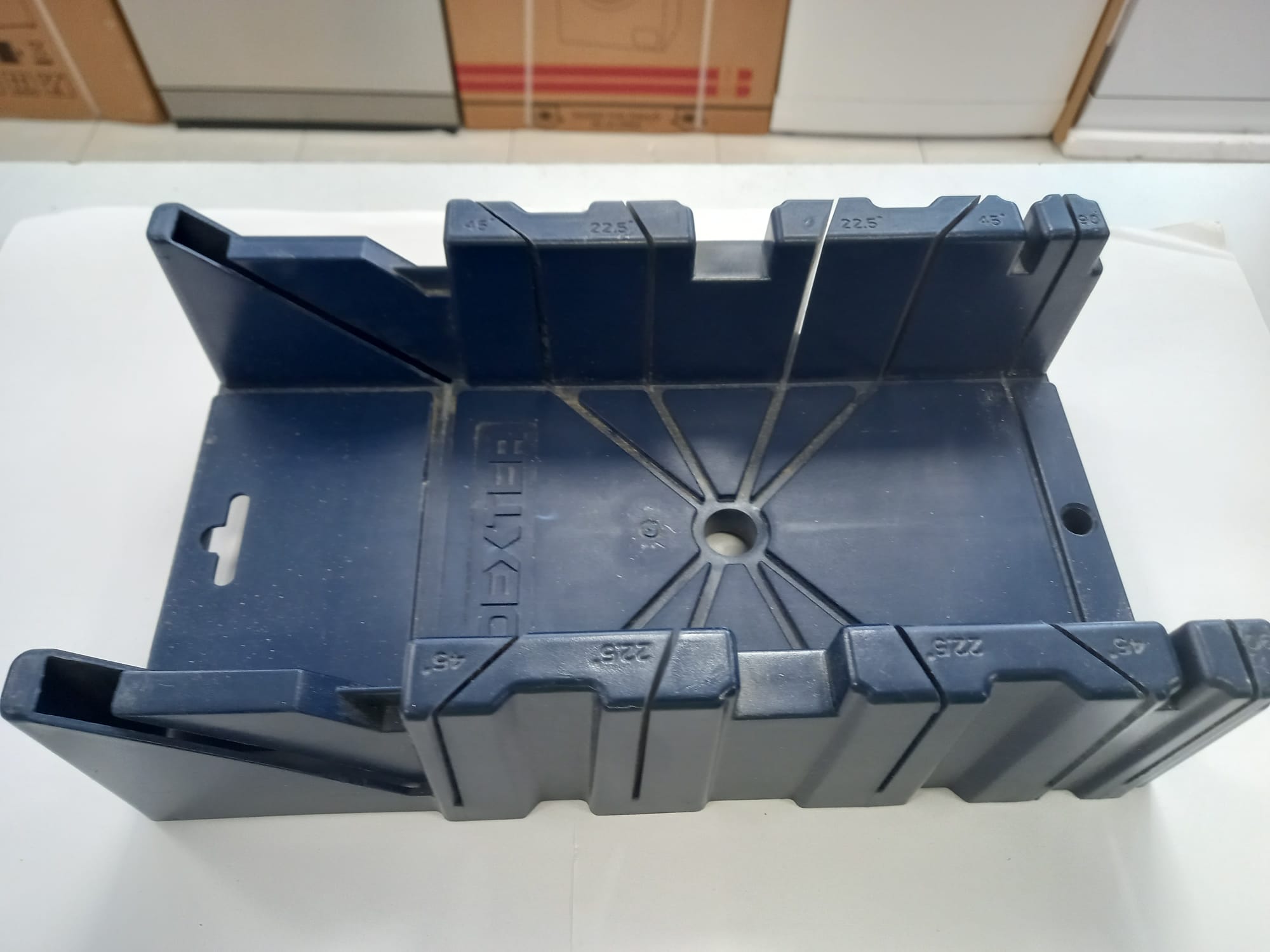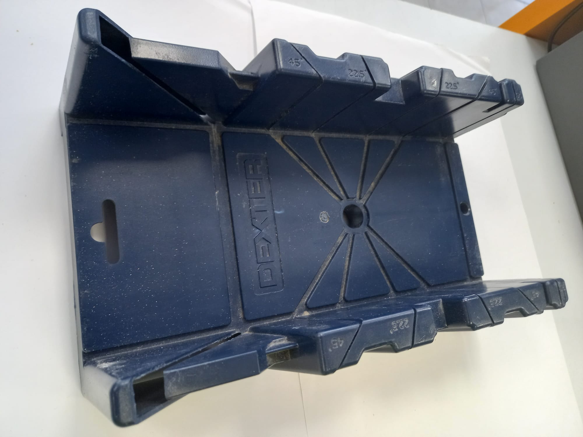 Guía de ingletear de la marca Dexter. Permite realizar cortes precisos en madera. Fabricada en plástico resistente. Diseñada para cortes de 45o, 22.5o y 90o.